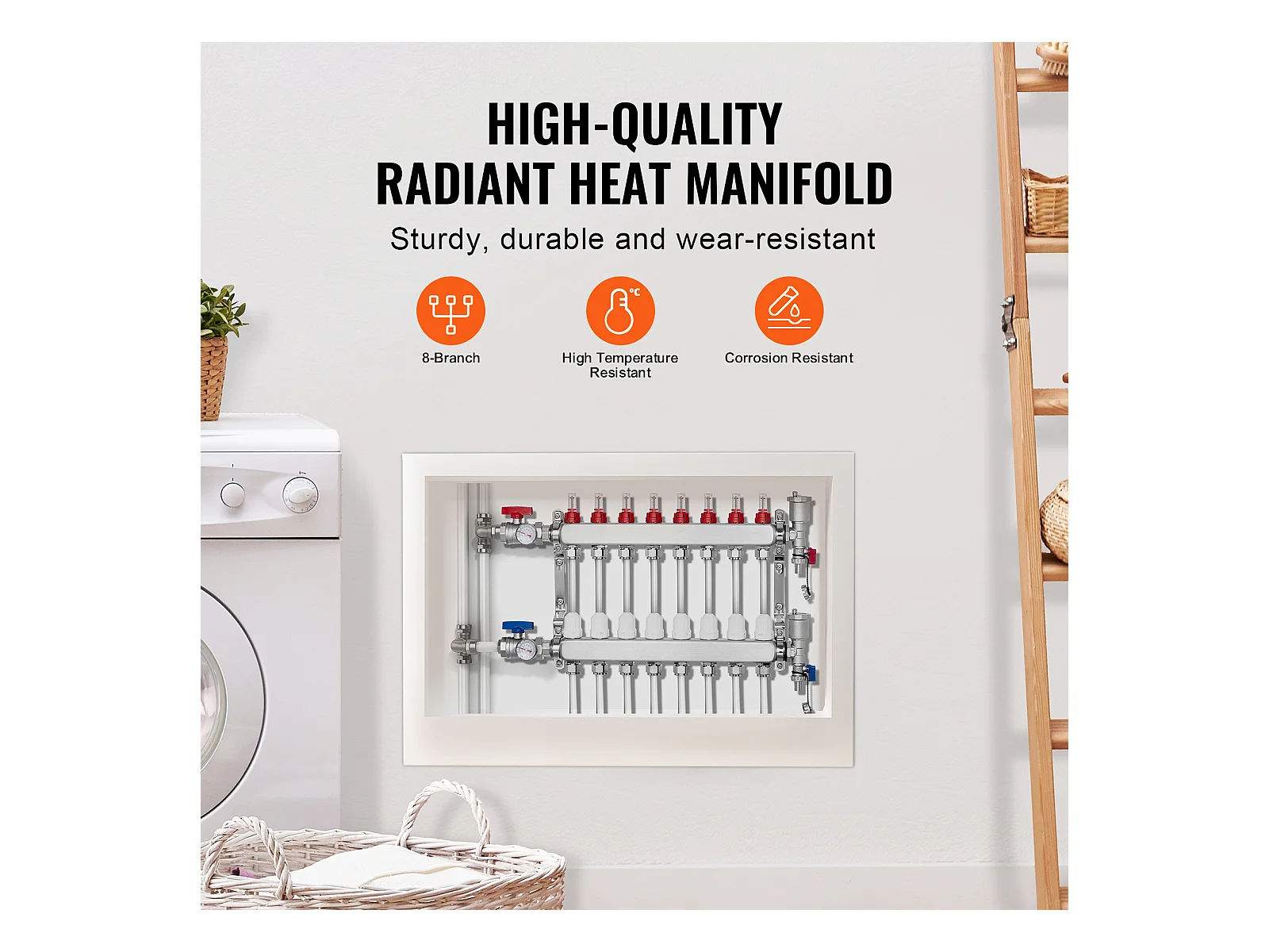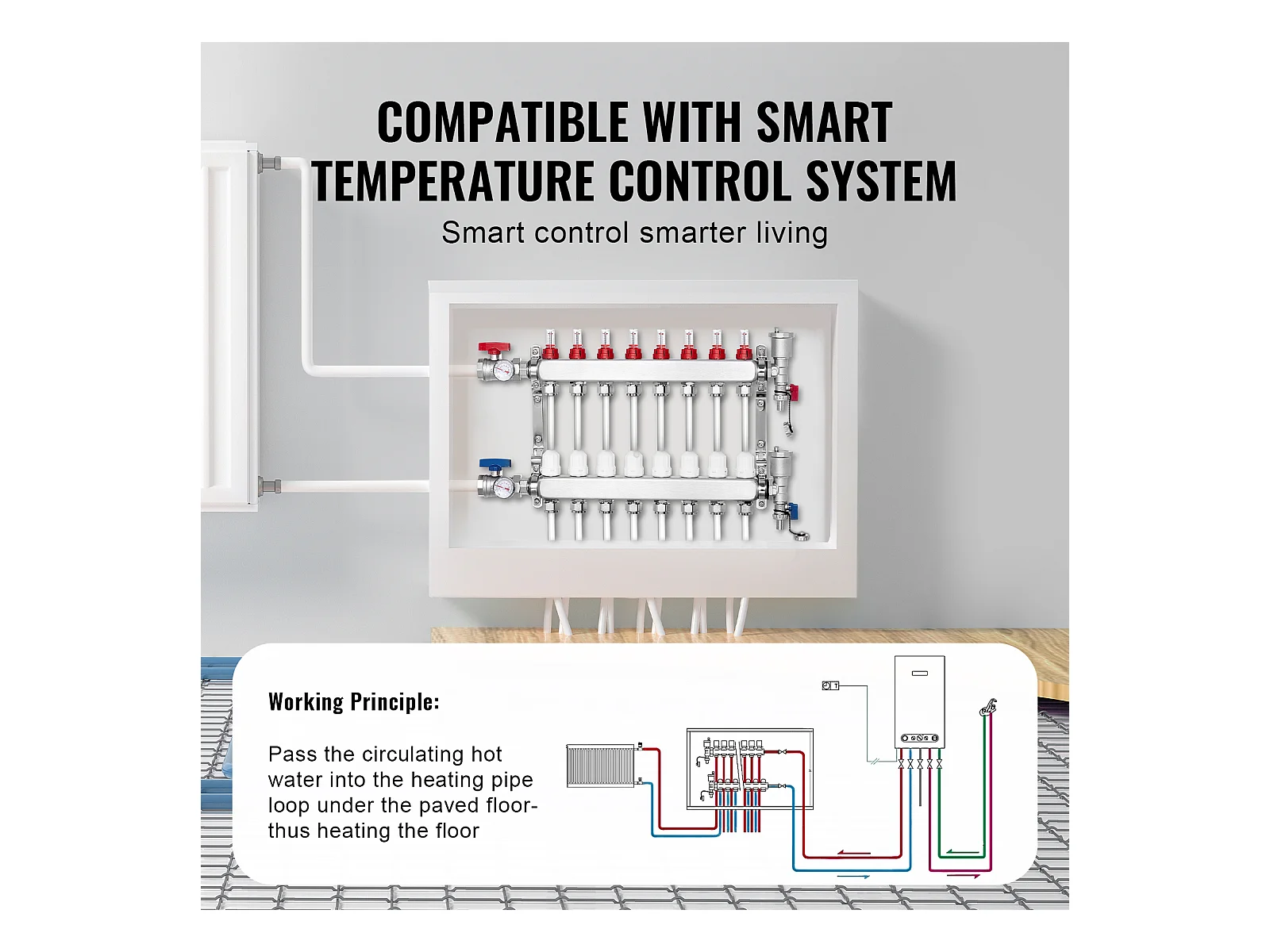 Collecteur PEX à 8 Branches SucceBuy pour Chauffage par le Sol avec Adaptateurs 2.54/5.08cm