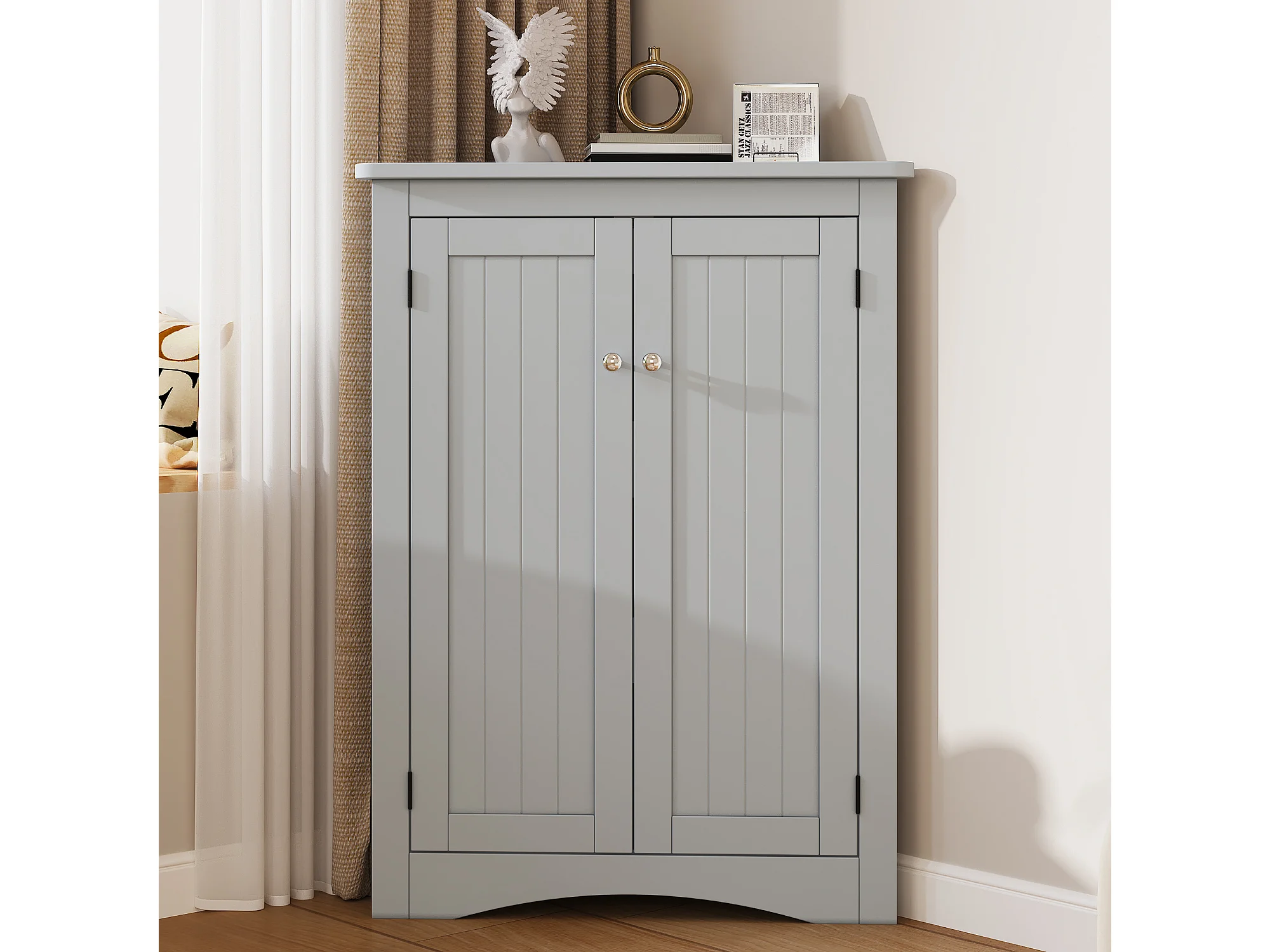 Colone d'angle de salle de bain - avec 2 portes - avec 3 étagères - étagères réglables - Gris