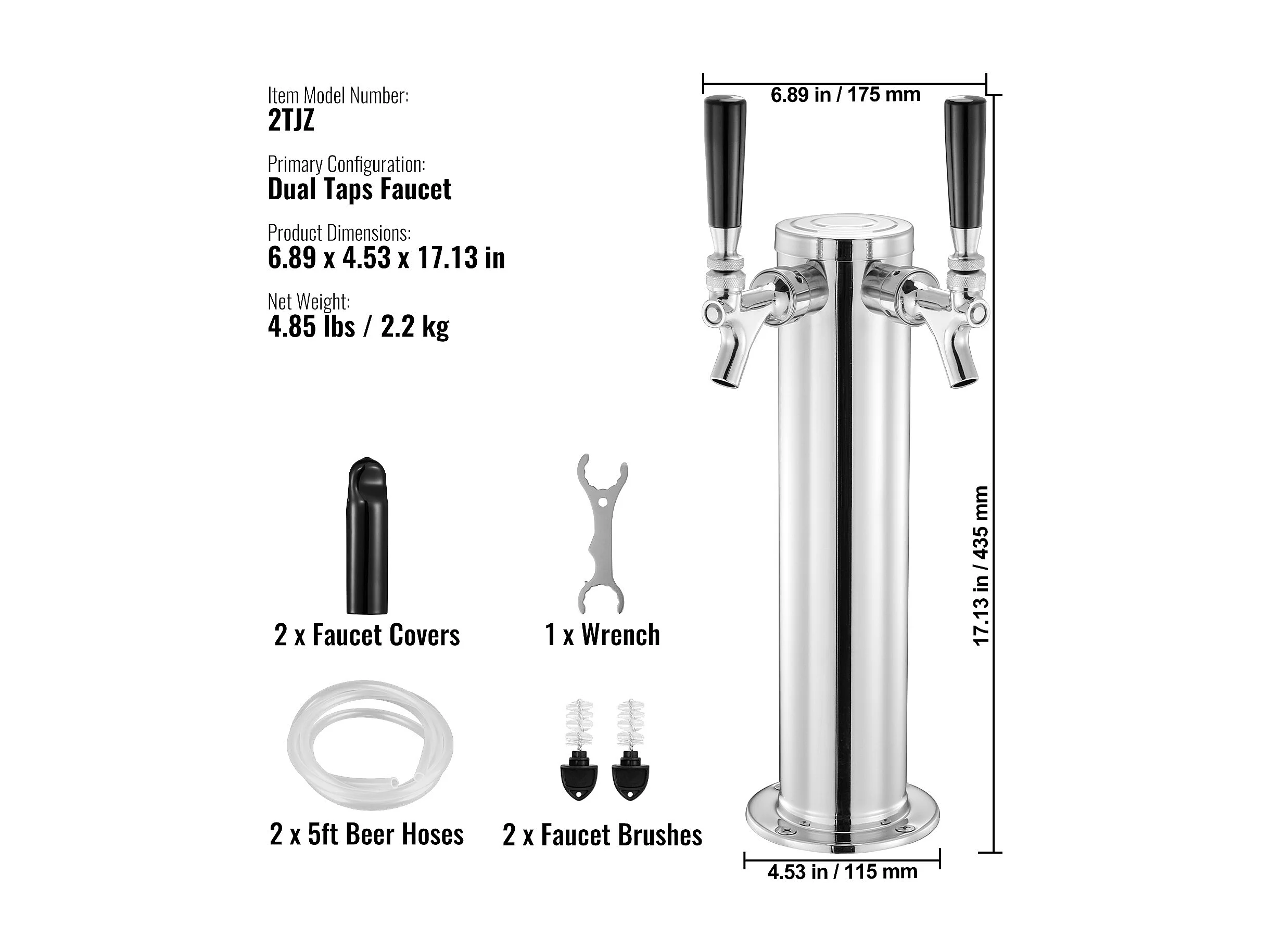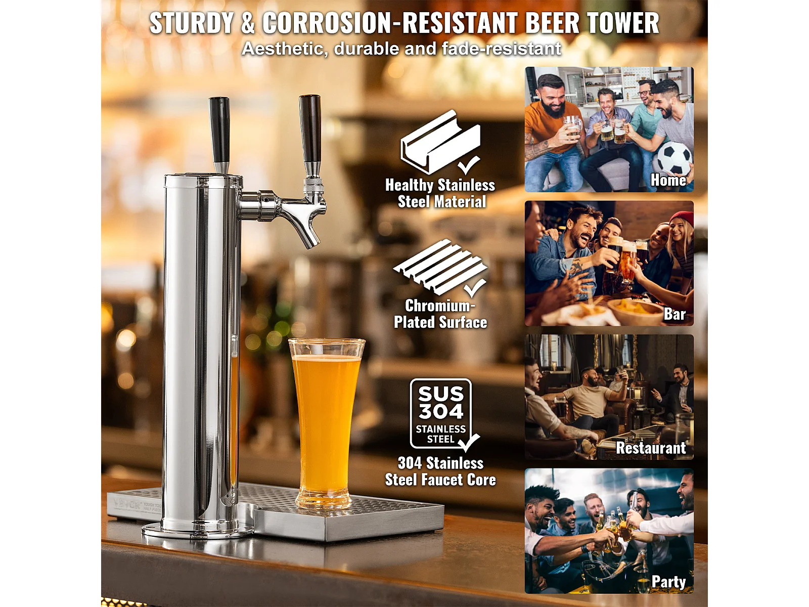 Kit Colonne à Bière SucceBuy, Kit Colonne à Bière Double Robinet, Distributeur de Bière Boisson en Acier Inoxydable, pour Bar Restaurant