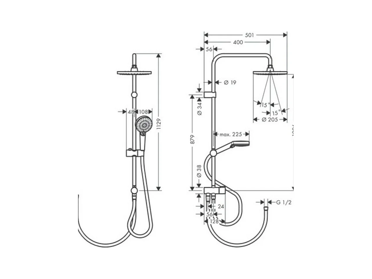 Colonne de douche ou bain douche sans mitigeur HANSGROHE Vernis Blend 200 EcoSmart noir mat