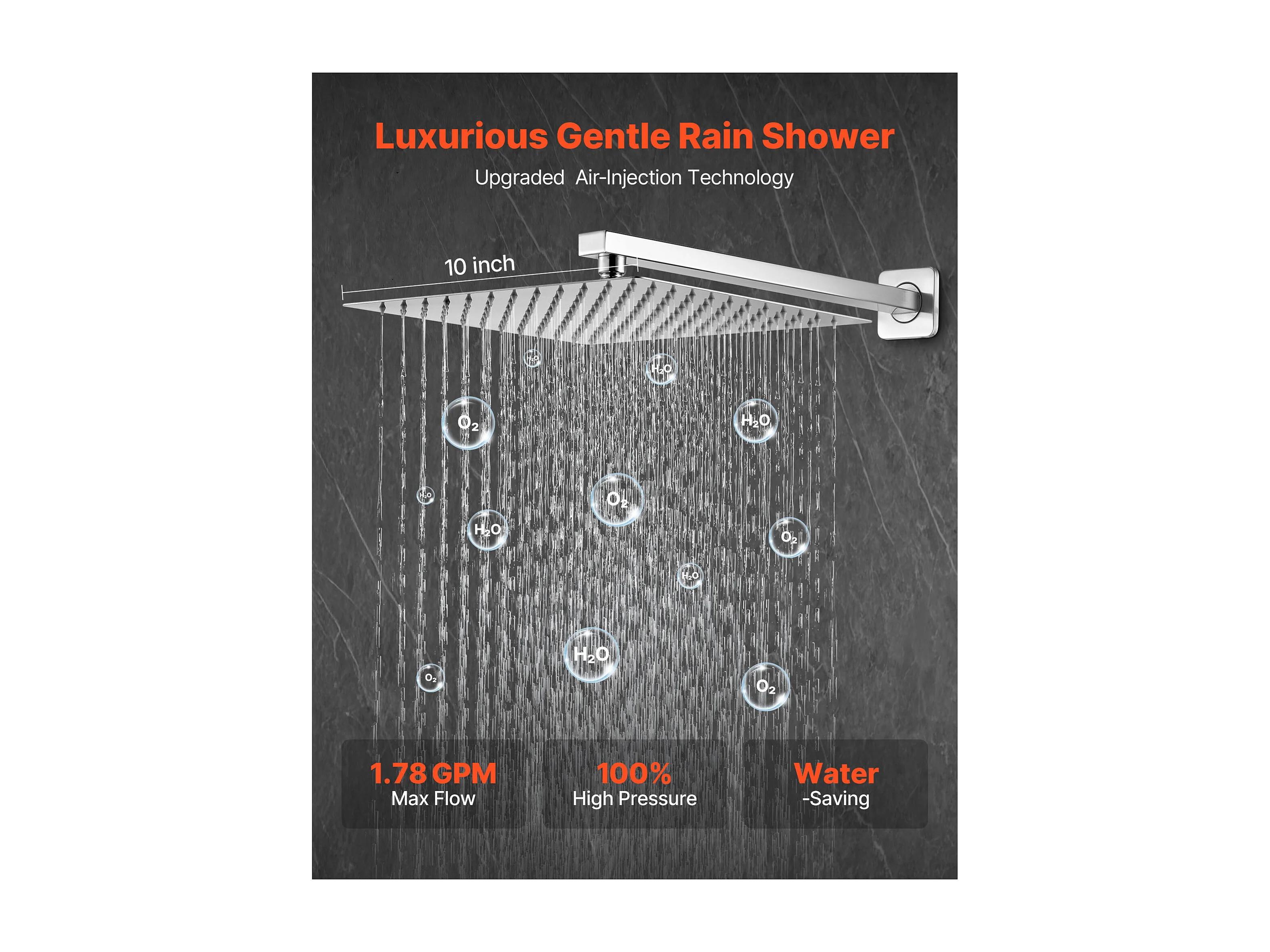 Colonne de Douche SucceBuy Kit de Douche avec Pommeau de Pluie Carré 254 mm, Douchette à Main et Kit de Montage, Installation Murale, Finition Nickel Brossé