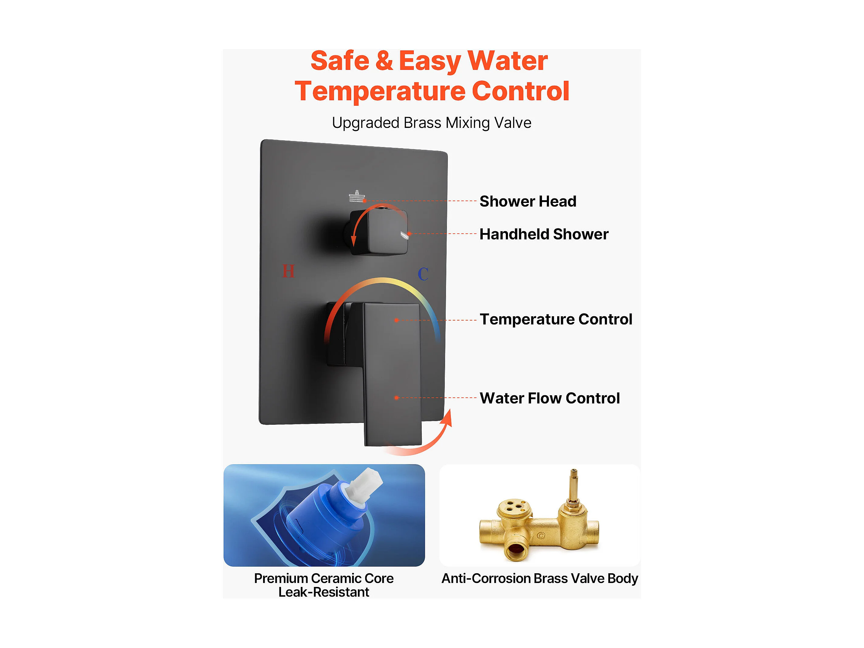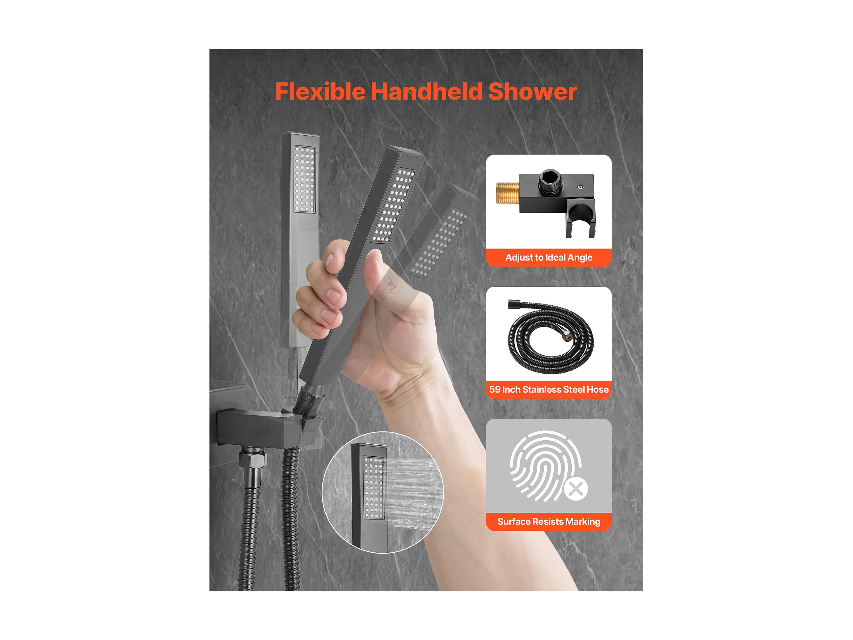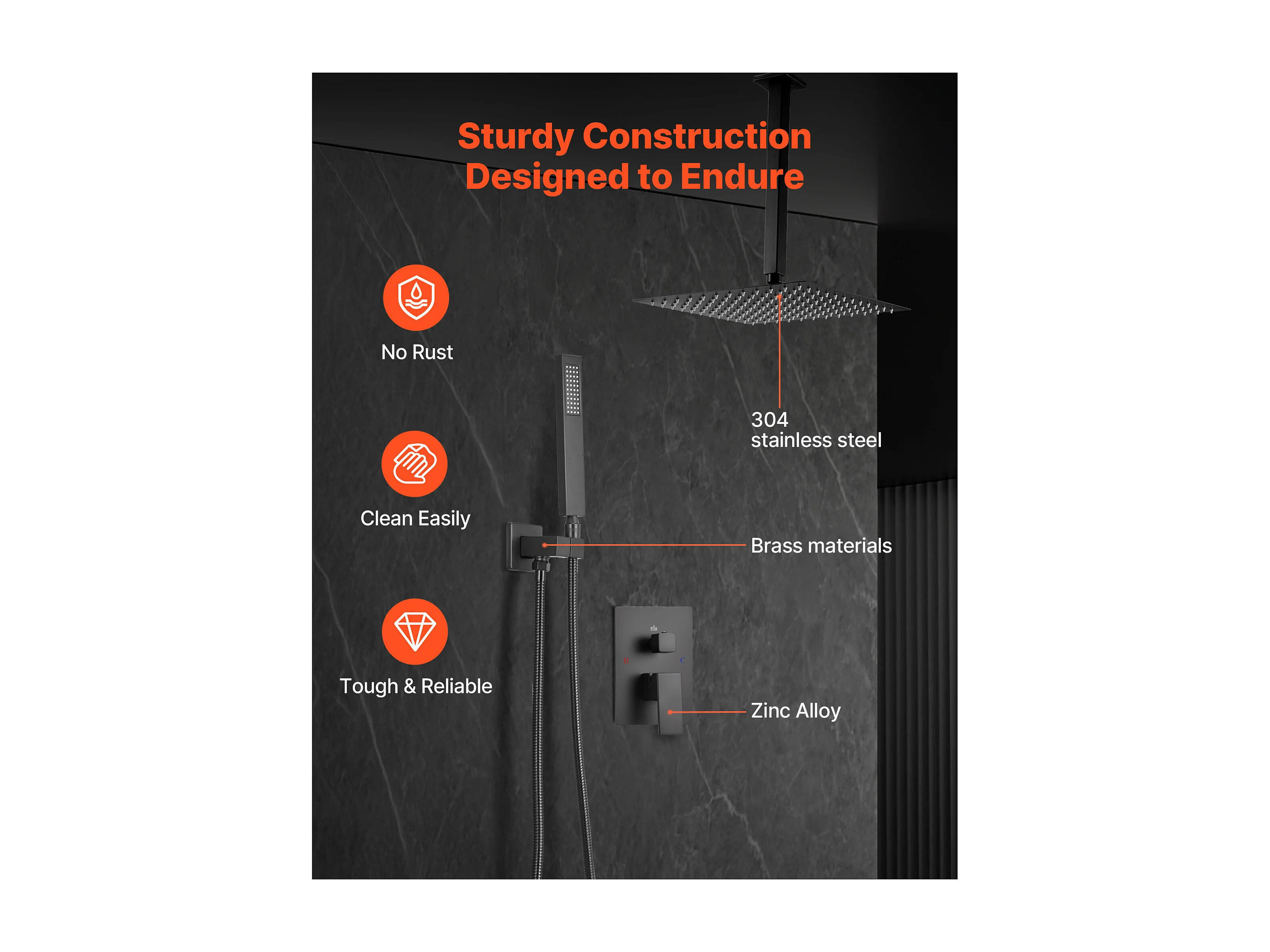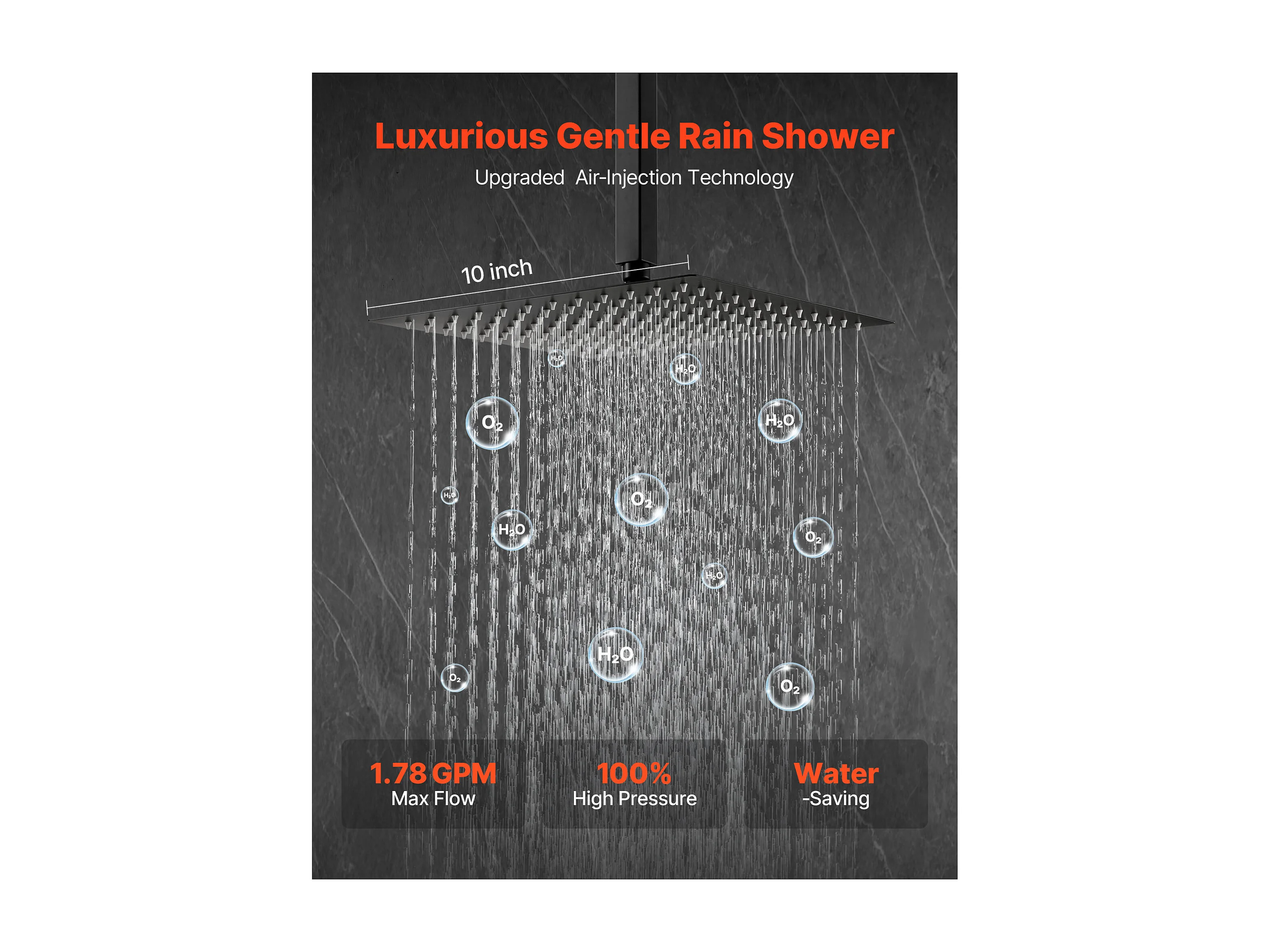 Colonne de Douche SucceBuy Kit de Douche, Système de Douche avec Pommeau Carré 254 mm, Douchette à Main et Kit de Montage au Plafond, Finition Noire Mate