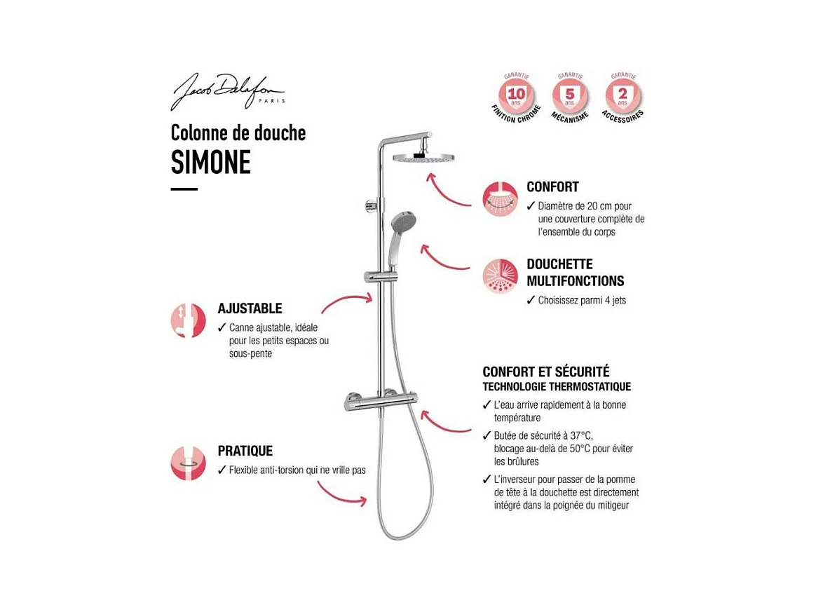 Colonne de douche thermostatique JACOB DELAFON Simone 4 jets