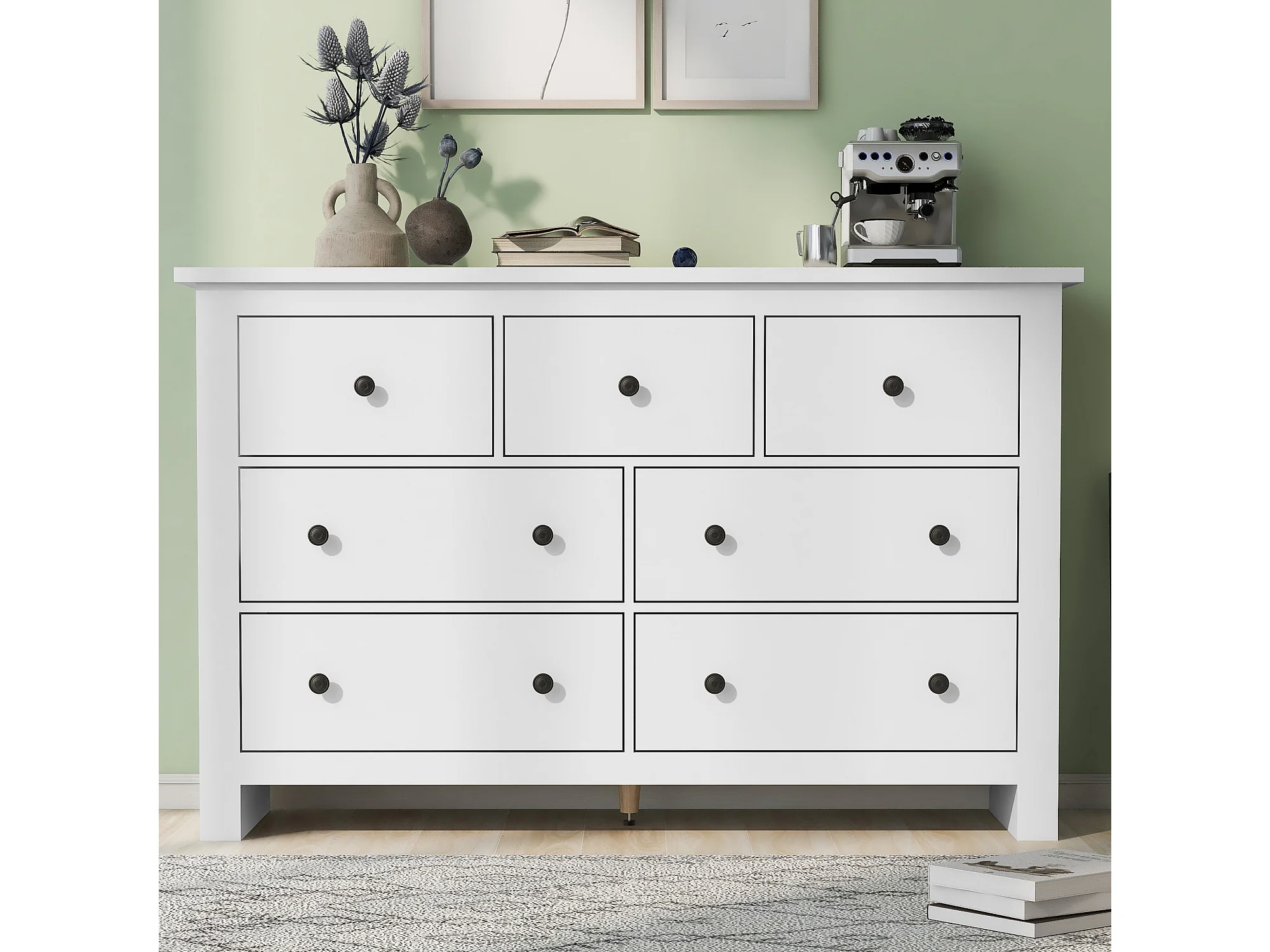 Commode 152x40x88.5 cm avec 7 tiroirs - meuble de rangement - buffet en bois - blanc