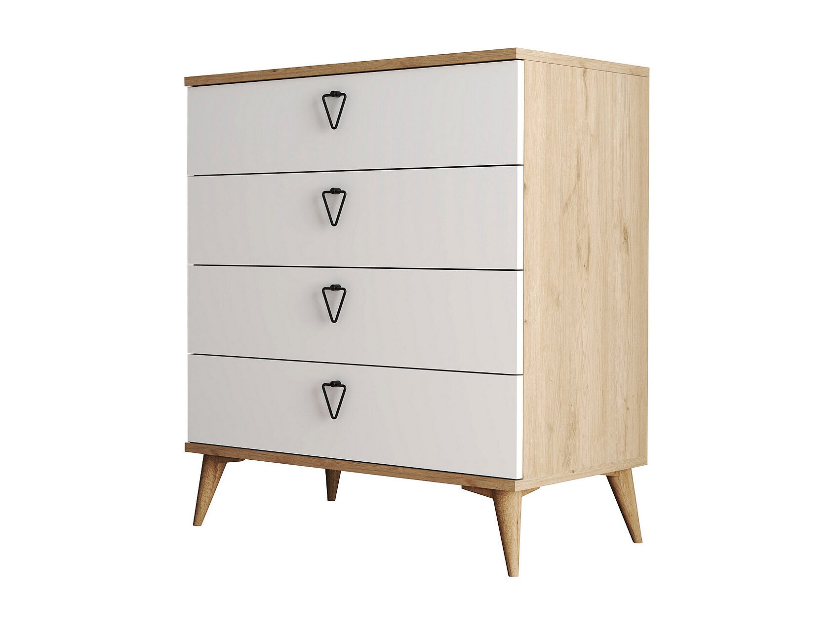 Commode 4 tiroirs bois blanc et naturel Vera 80cm