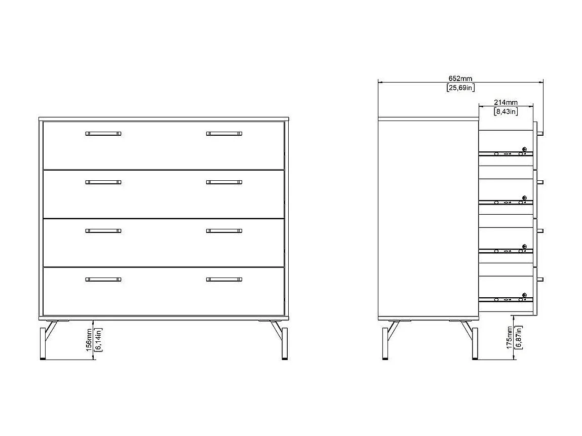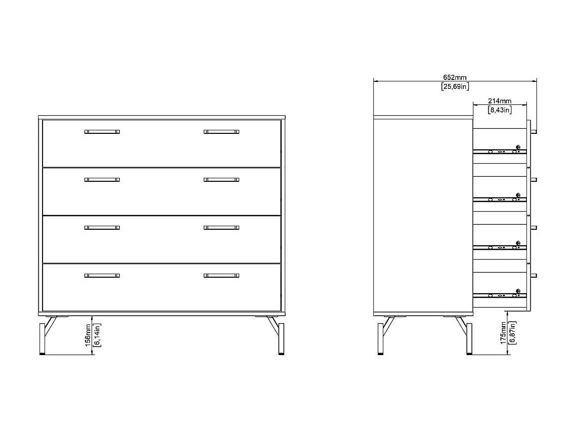 Commode 4 tiroirs noir mat avec piètement métaL H96 cm - BORA