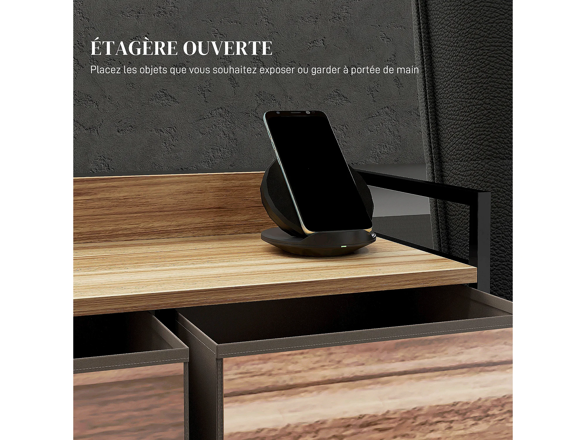 Commode 3 tiroirs 2 étagères - dim. 60L x 29l x 101H cm - châssis piètement métal noir tiroirs non tissés façades aspect bois
