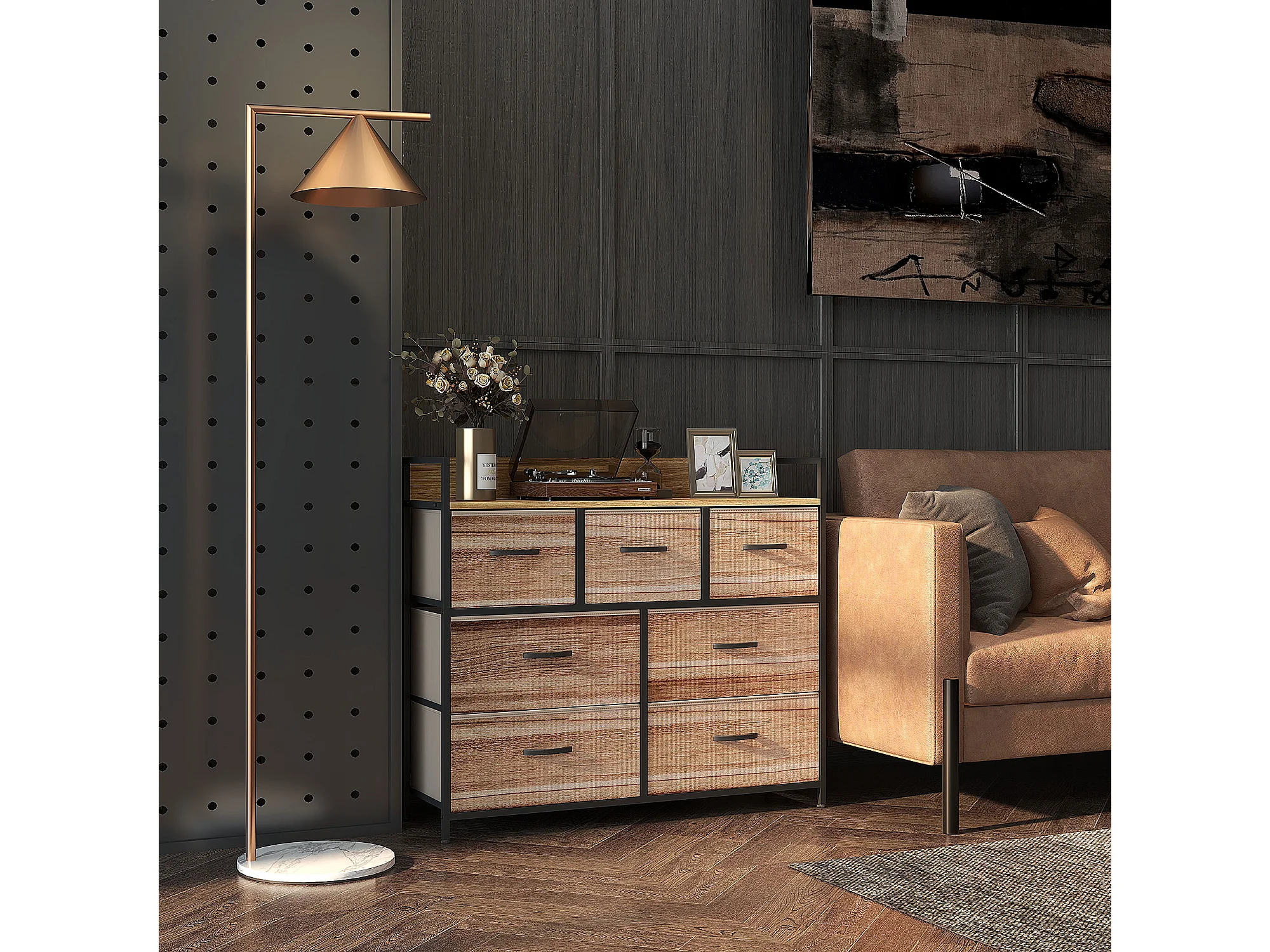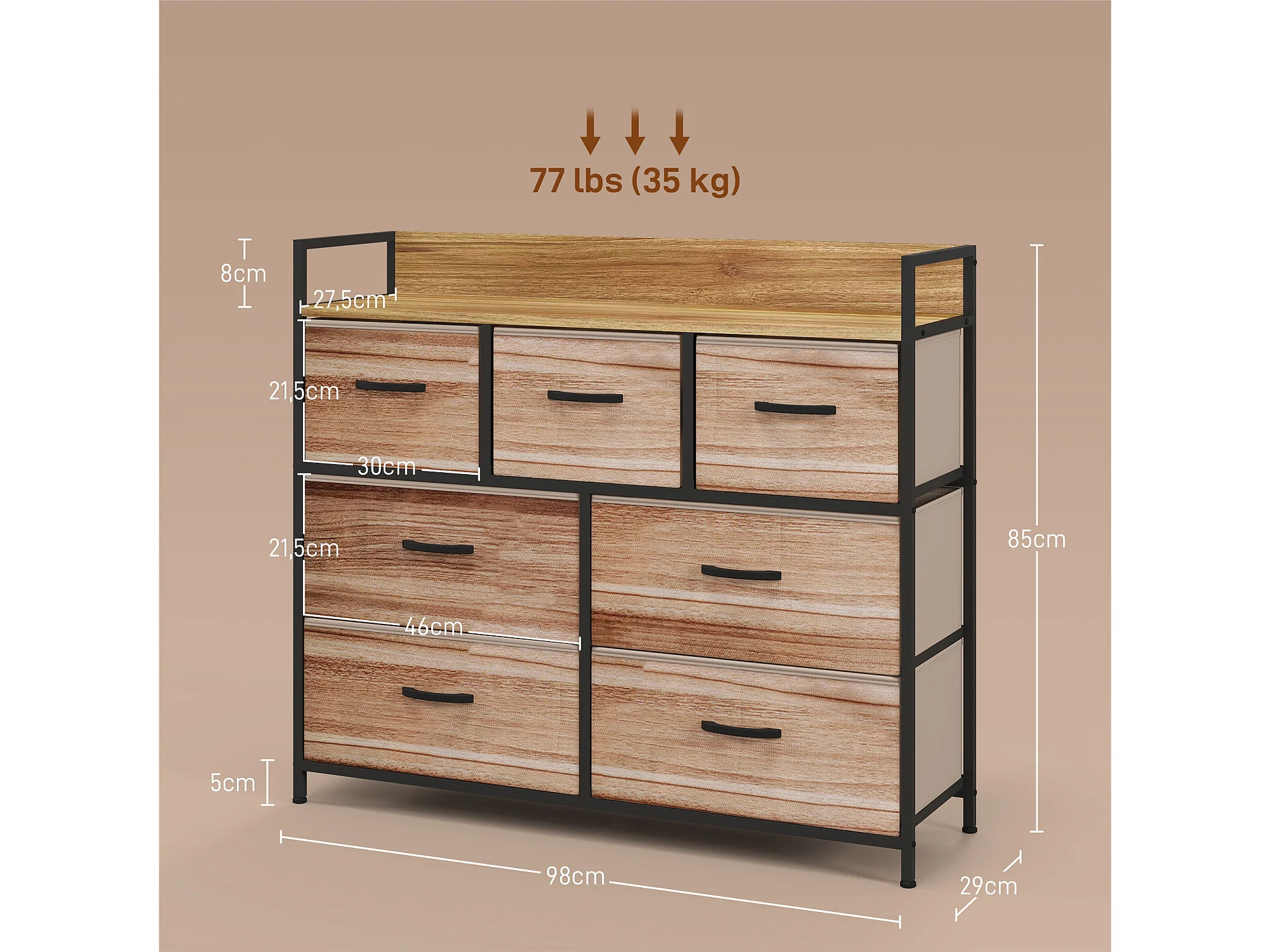 Commode 7 tiroirs non tissés pliables - structure acier noir - plateau MDF - aspect bois