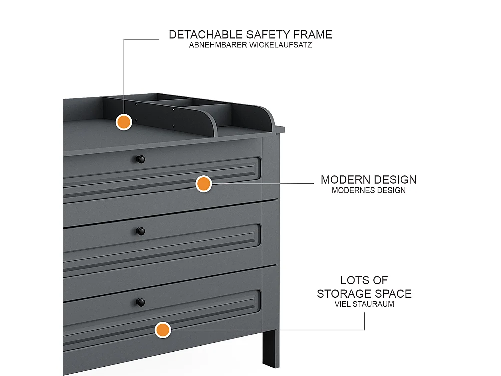 Commode à langer gris 133x70x98.4 ajaton