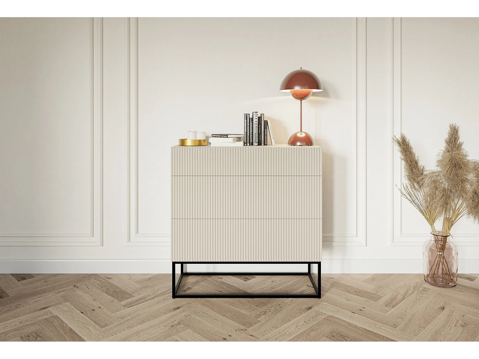 Commode 3 tiroirs - 90 cm - grège avec pieds noirs - VELDIO