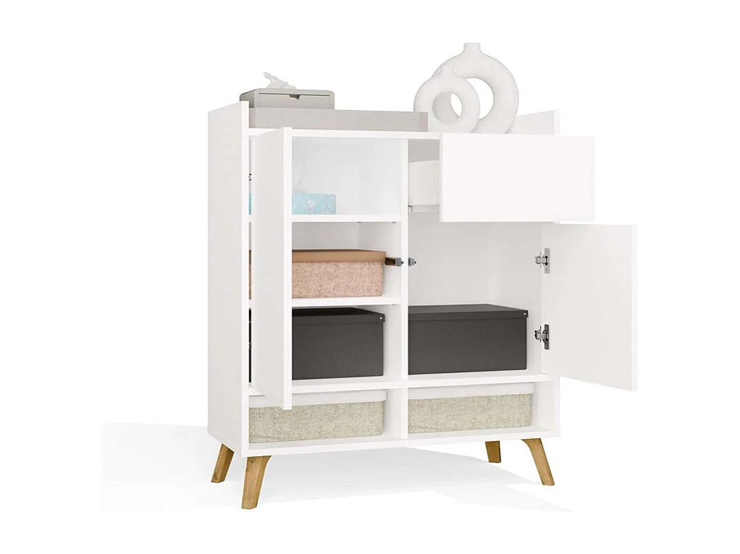 Buffet moderne avec étagères + 4 portes + 2 tiroirs - 120 x 35 x 80.5 cm - aggloméré - blanc