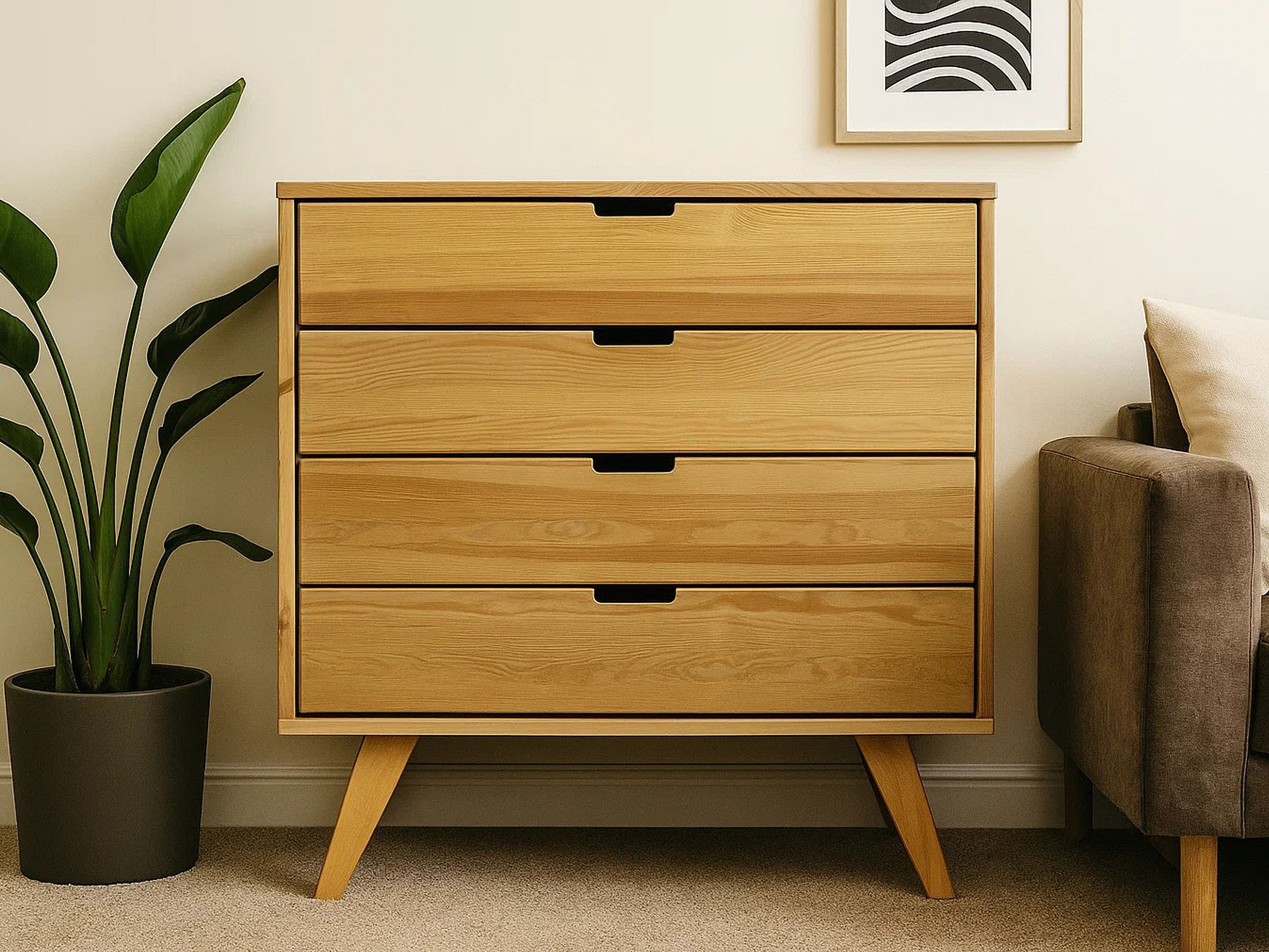 Commode en bois 90 cm Malmo I, 4 tiroirs, couleur chêne