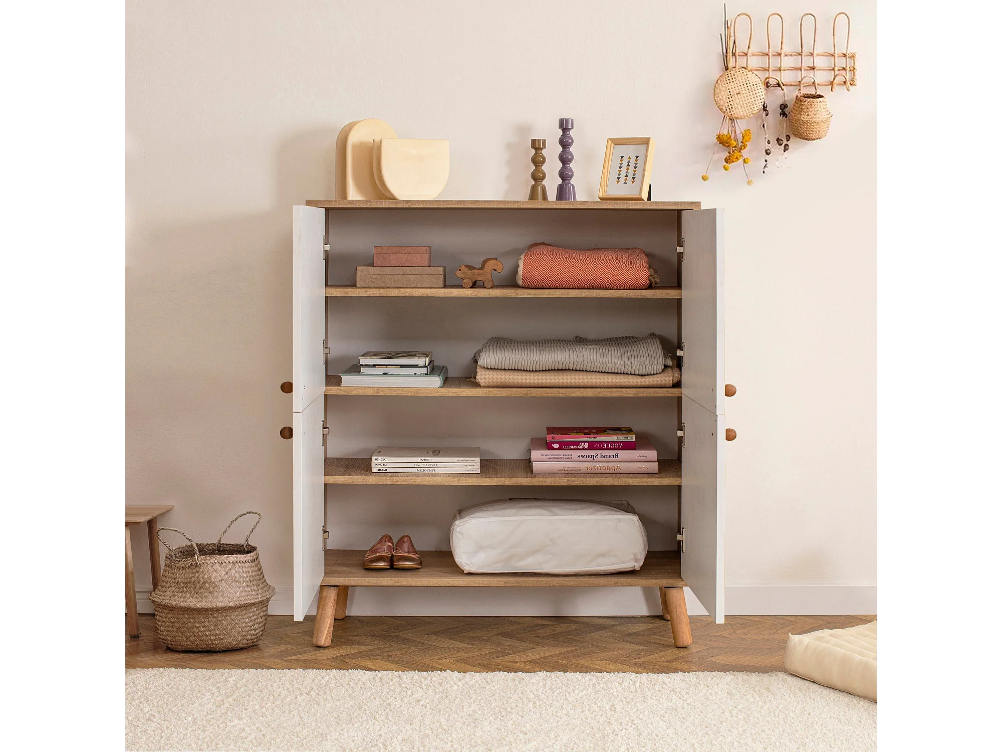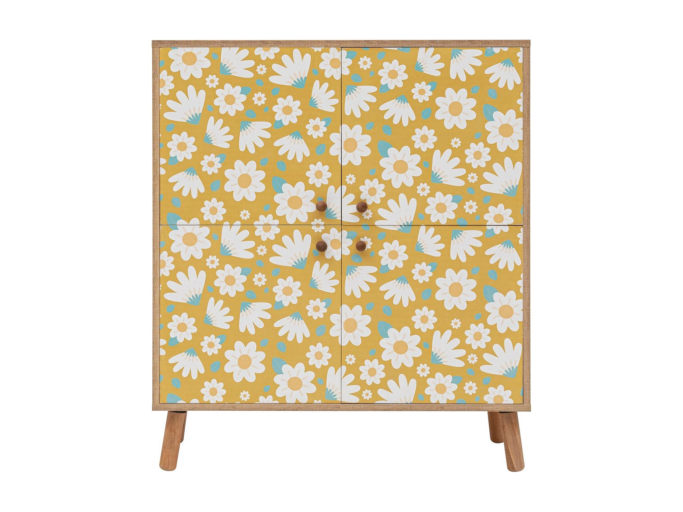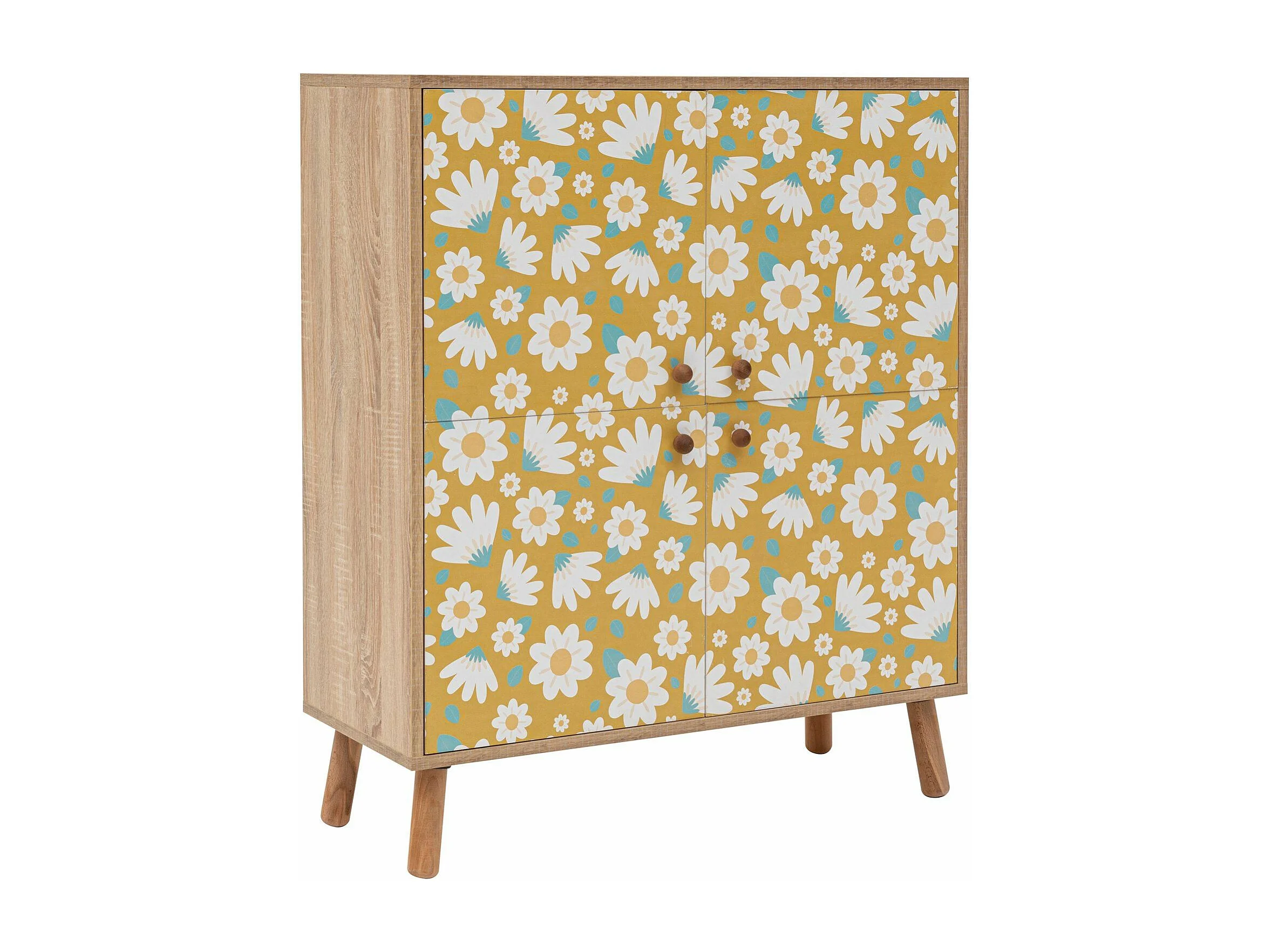 Commode Kaviny L95xH111cm Bois Motif Fleurs Blanc sur fond Jaune