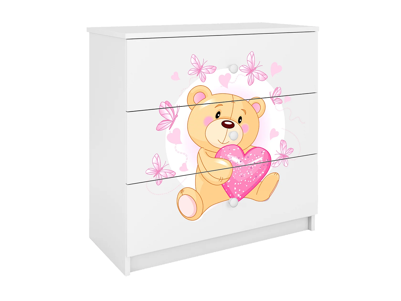 Commode pour enfants avec tiroirs Ourson Papillons en couleur blanche Babydreams