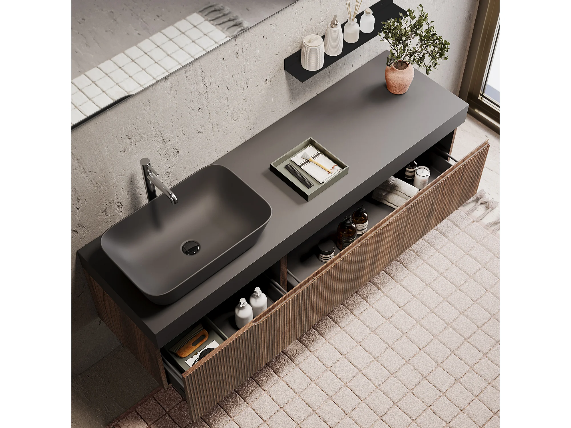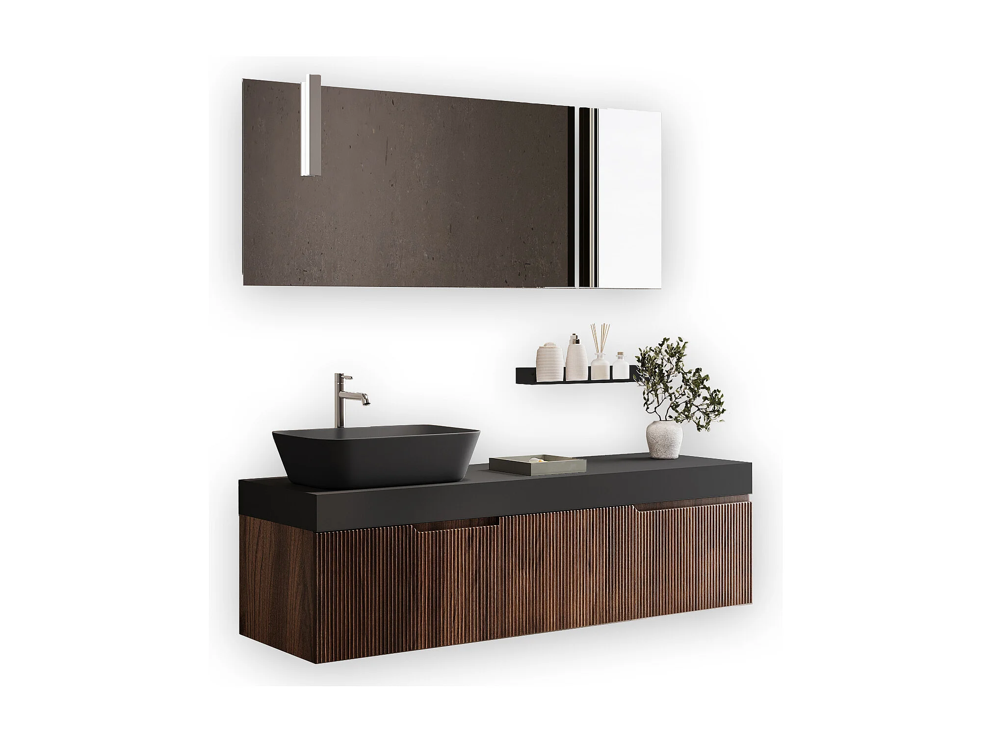 Composition vasque droite 4 pieces VENERE chène/blanc mat