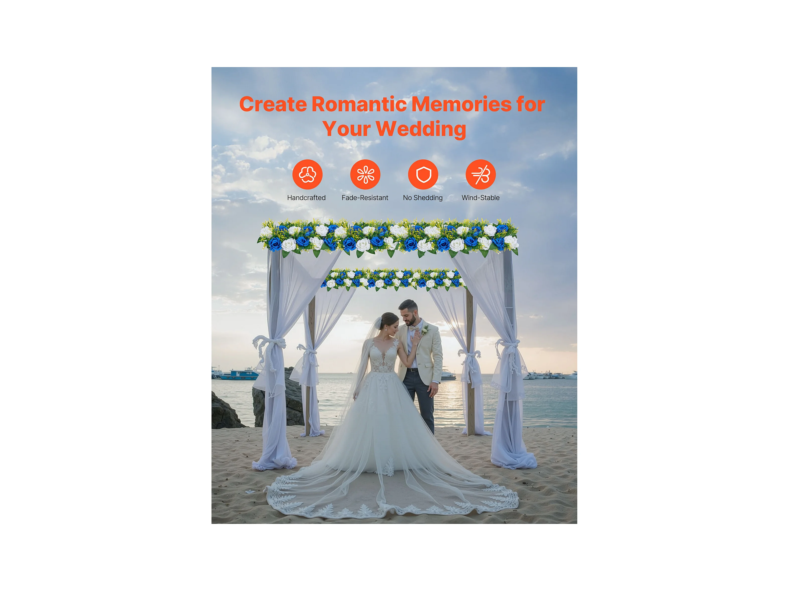 Composition Florale SucceBuy Artificielle Linéaire, Lot de 10, Fleurs Artificielles avec Roses Bleues et Blanches, pour Centre de Table, Mariage, Fête