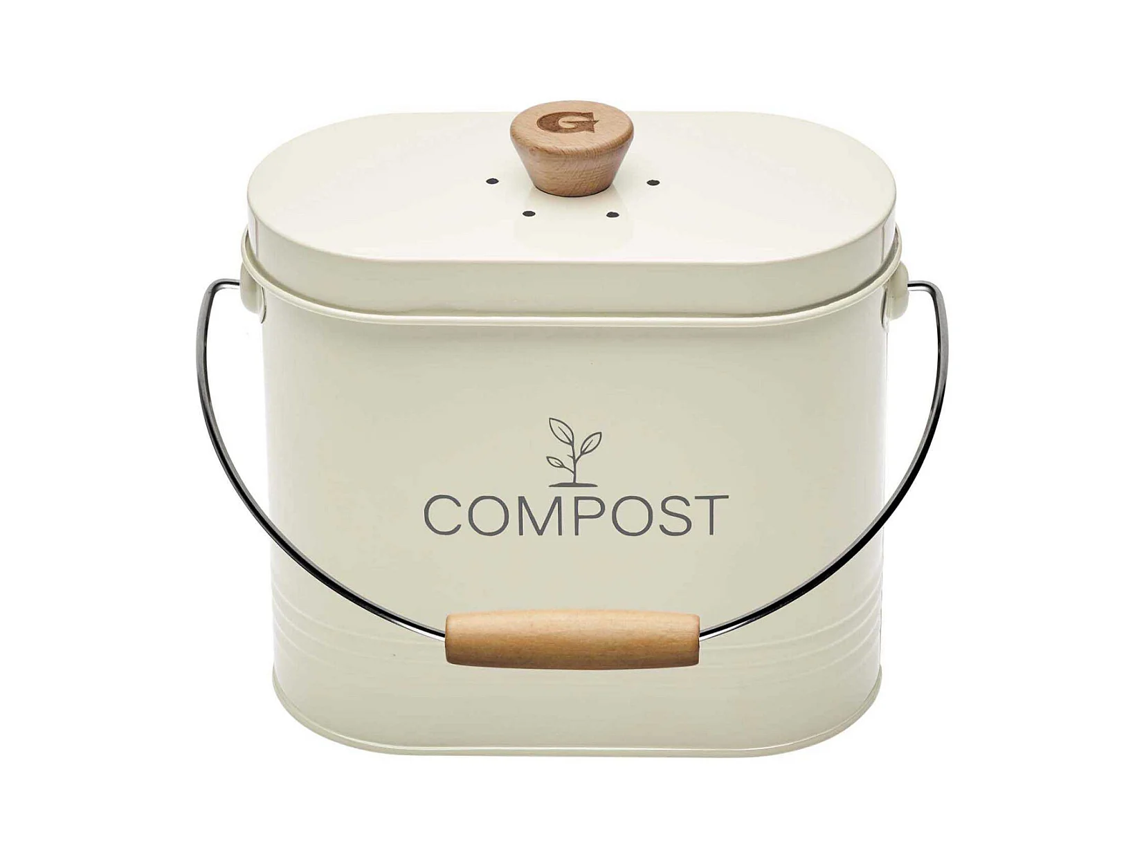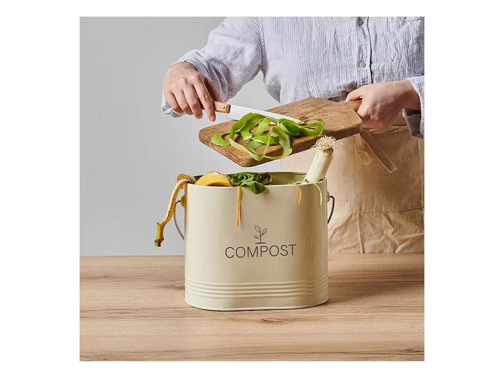 Composteur de cuisine ovale en métal avec filtre 3 litres