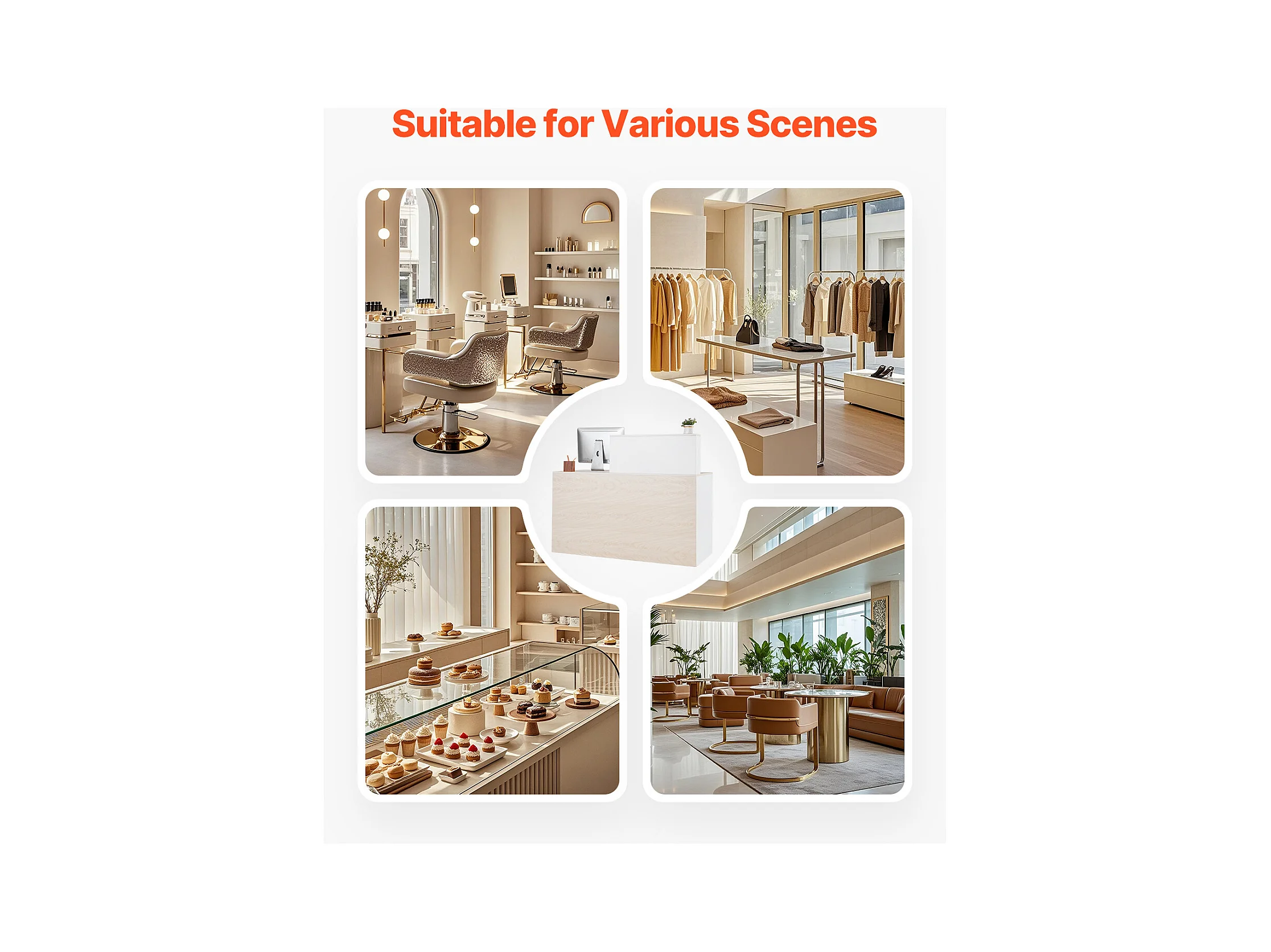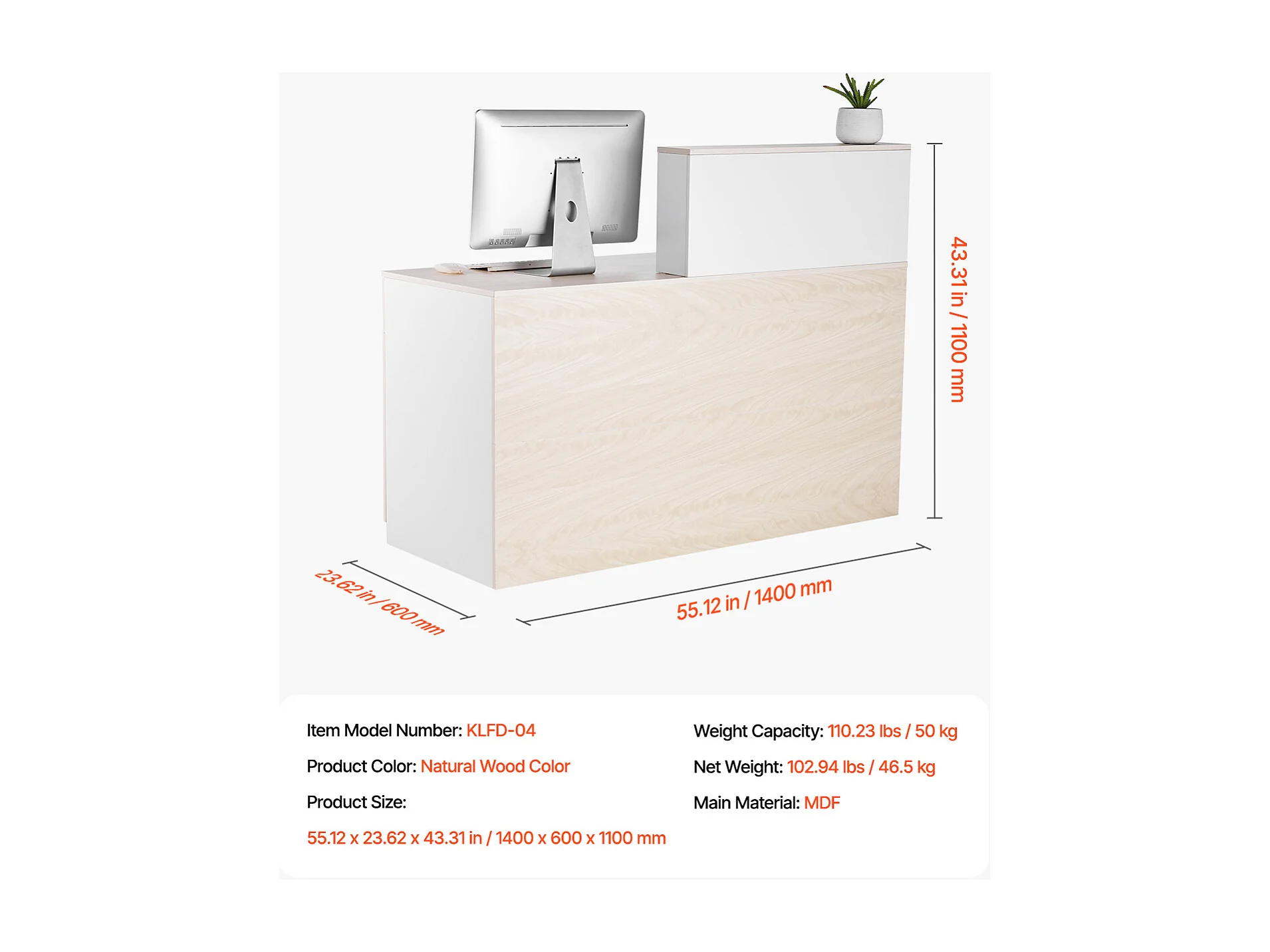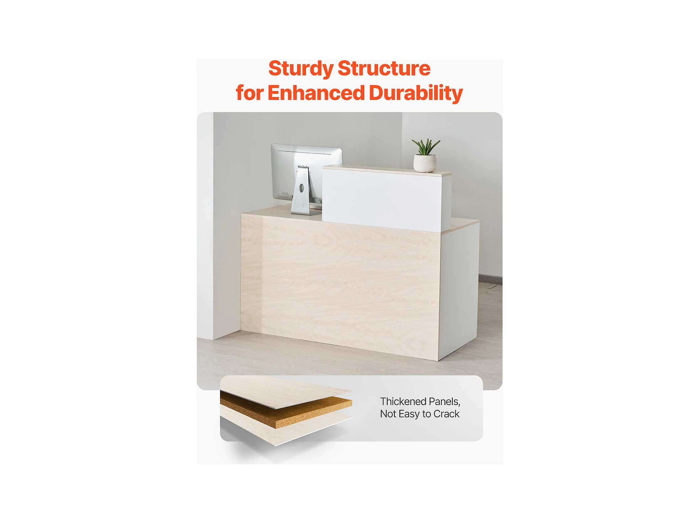 Comptoir d'Accueil Bureau, SucceBuy Bureau d'Accueil Rectangulaire de 140 cm, Table de Bureau en Bois