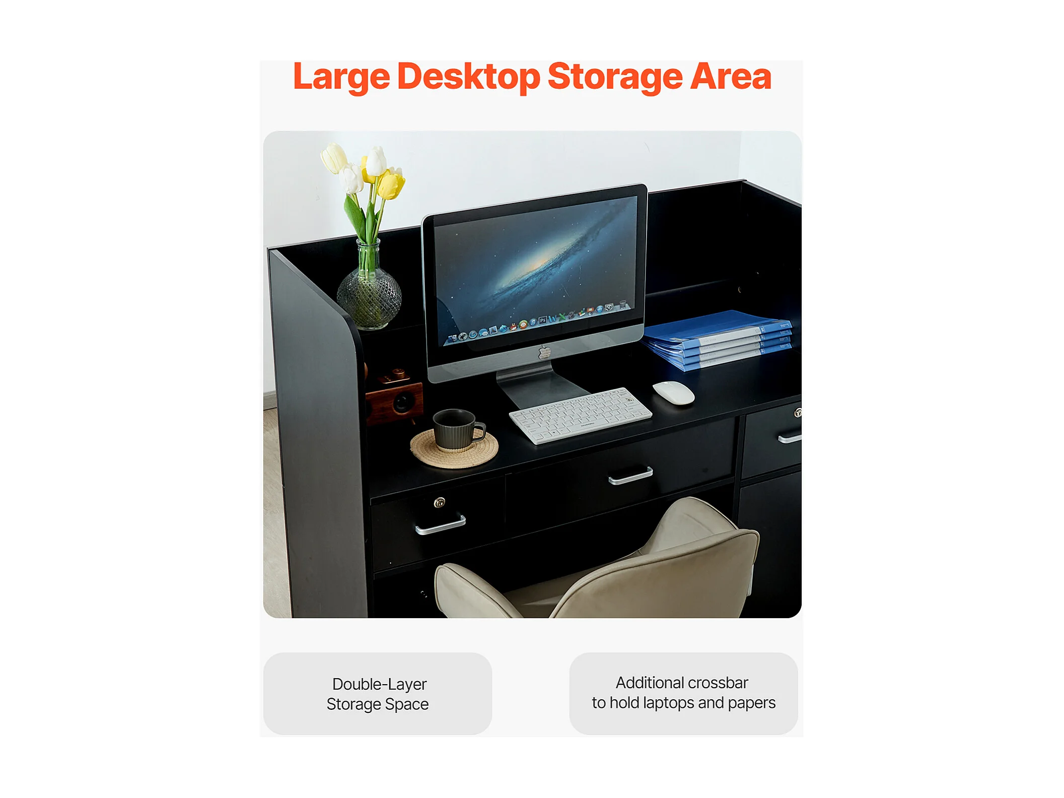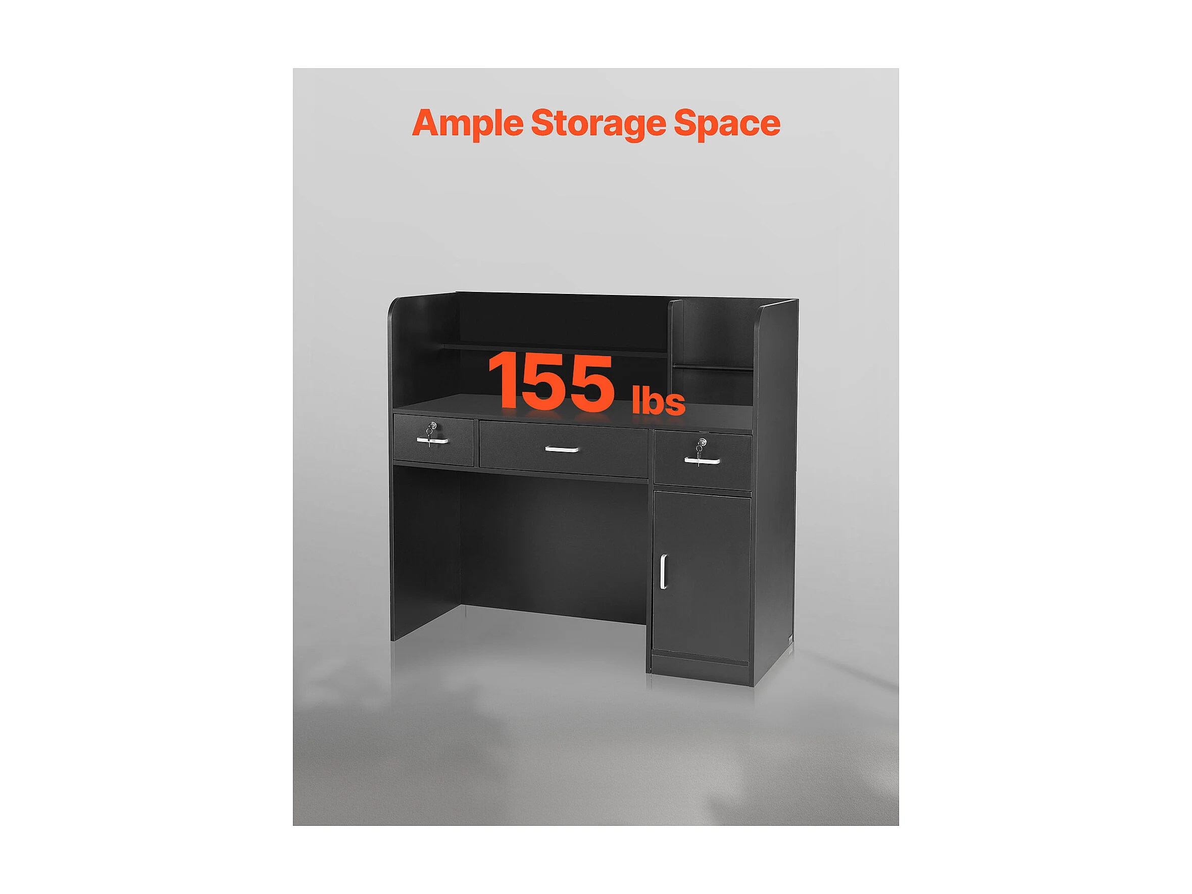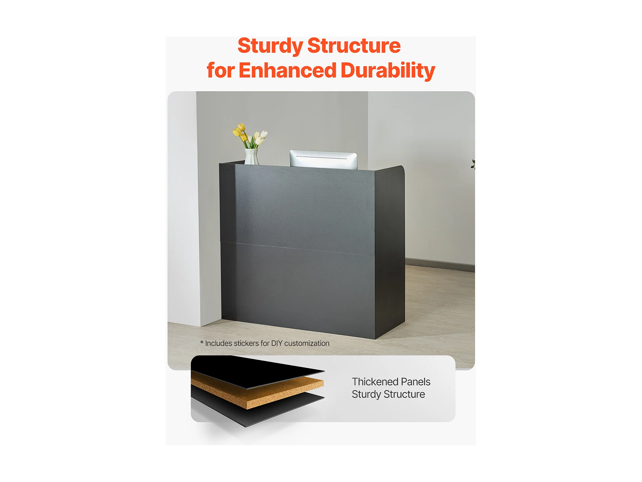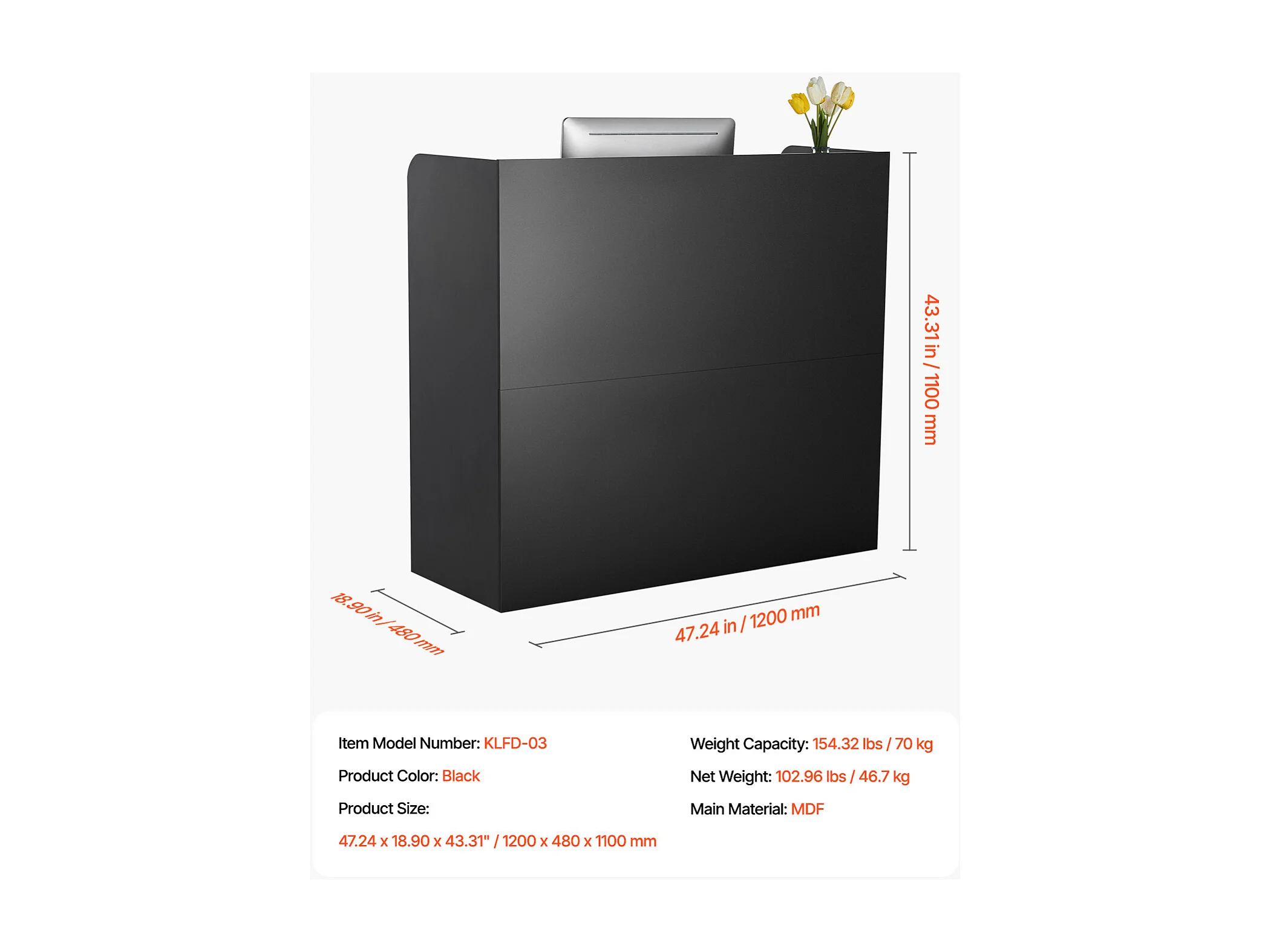 Comptoir d'Accueil Bureau, SucceBuy Bureau de Réception 120 cm, Table de Comptoir de Bureau Rectangulaire Noire pour Hall d'Entrée
