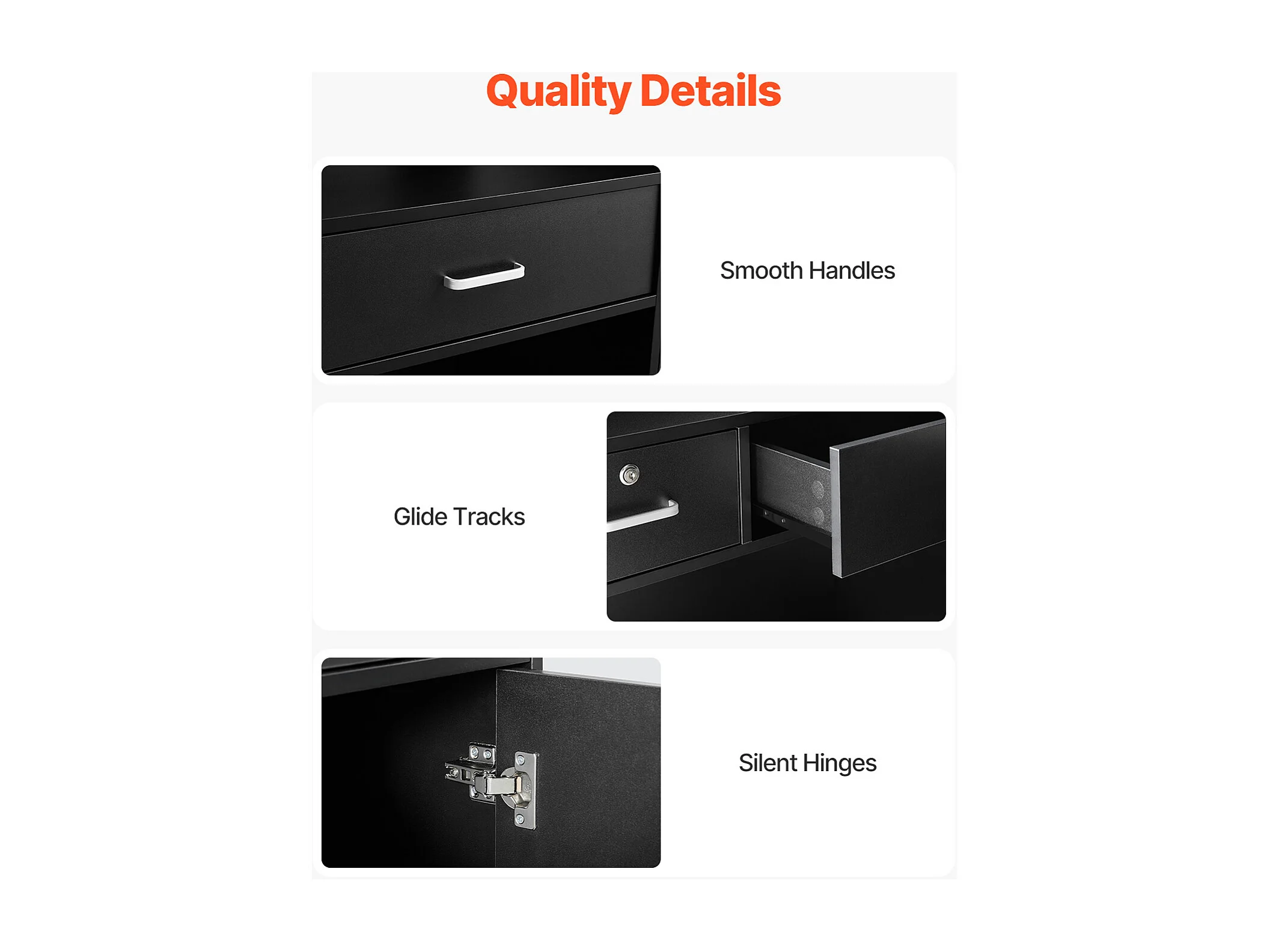 Bureau informatique meuble de bureau 3 tiroirs coulissants + 3 étagères grand plateau 120L x 49l x 72H cm MDF noir