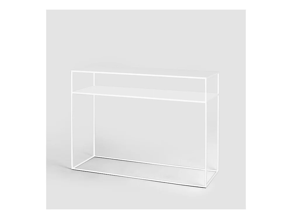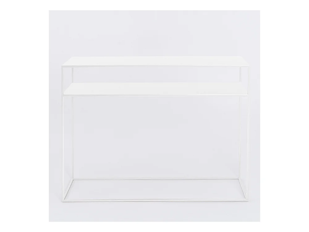 Table console plateau étagère dim. 100L x 30l x 87H cm acier panneaux blanc