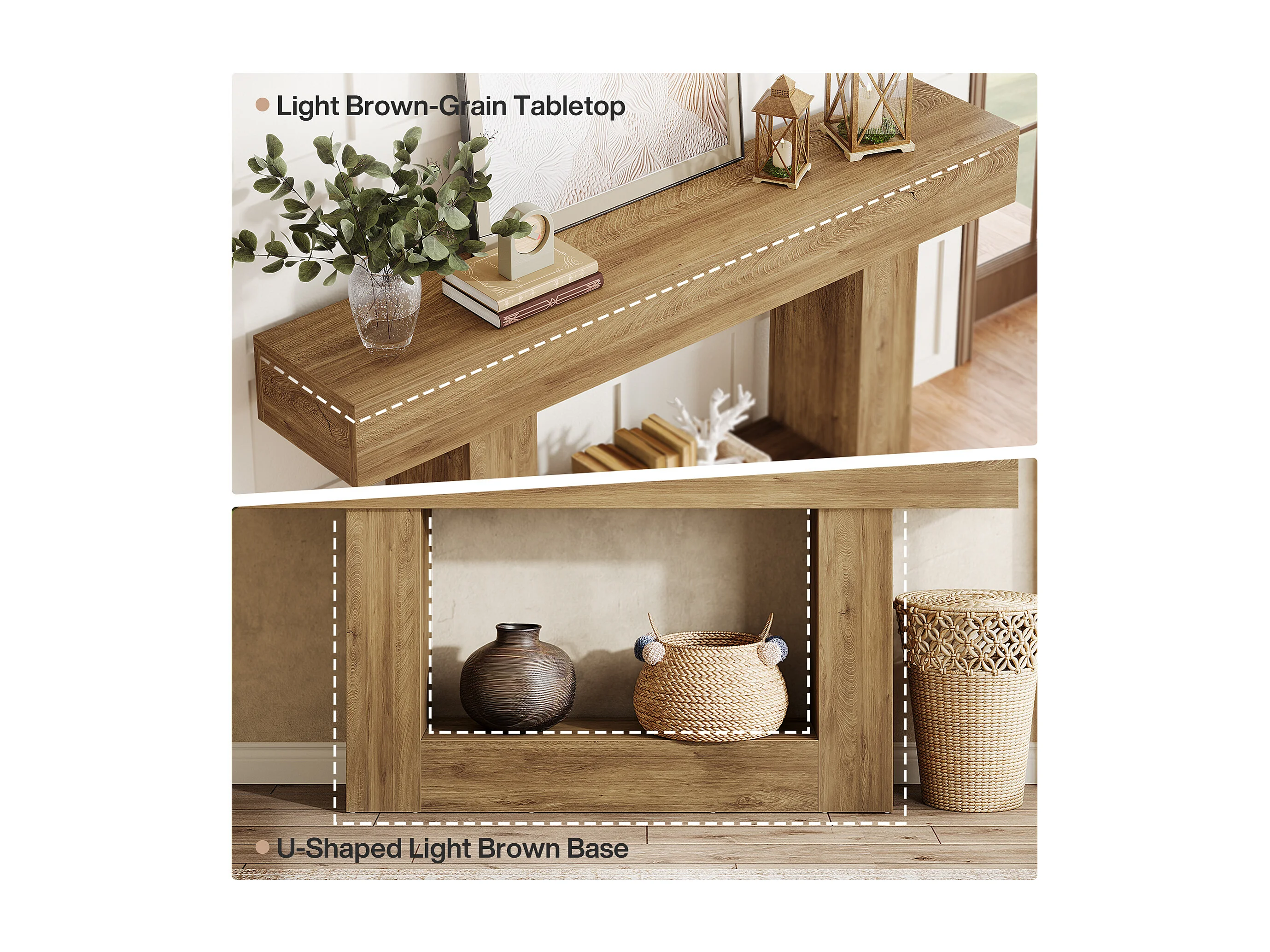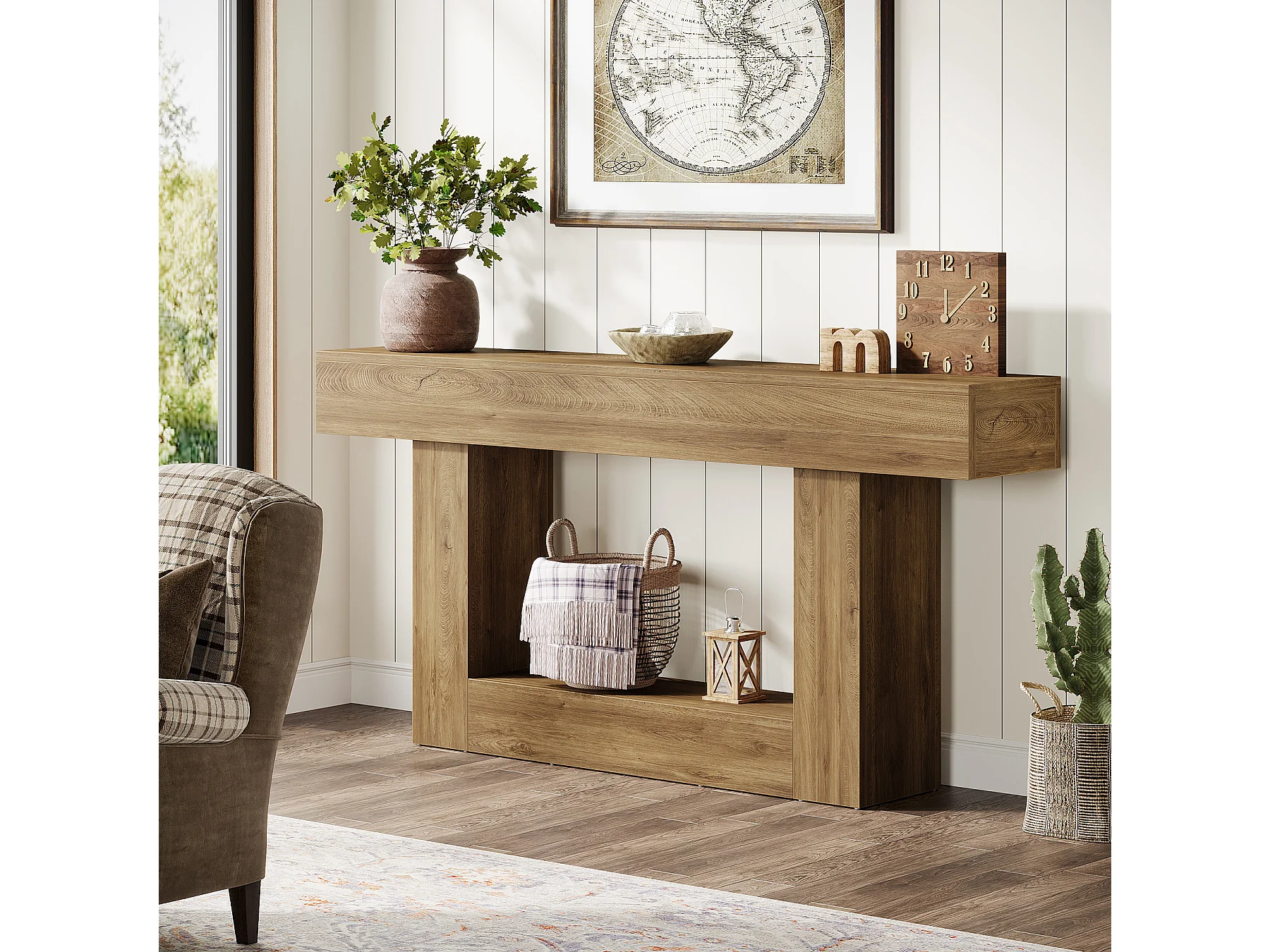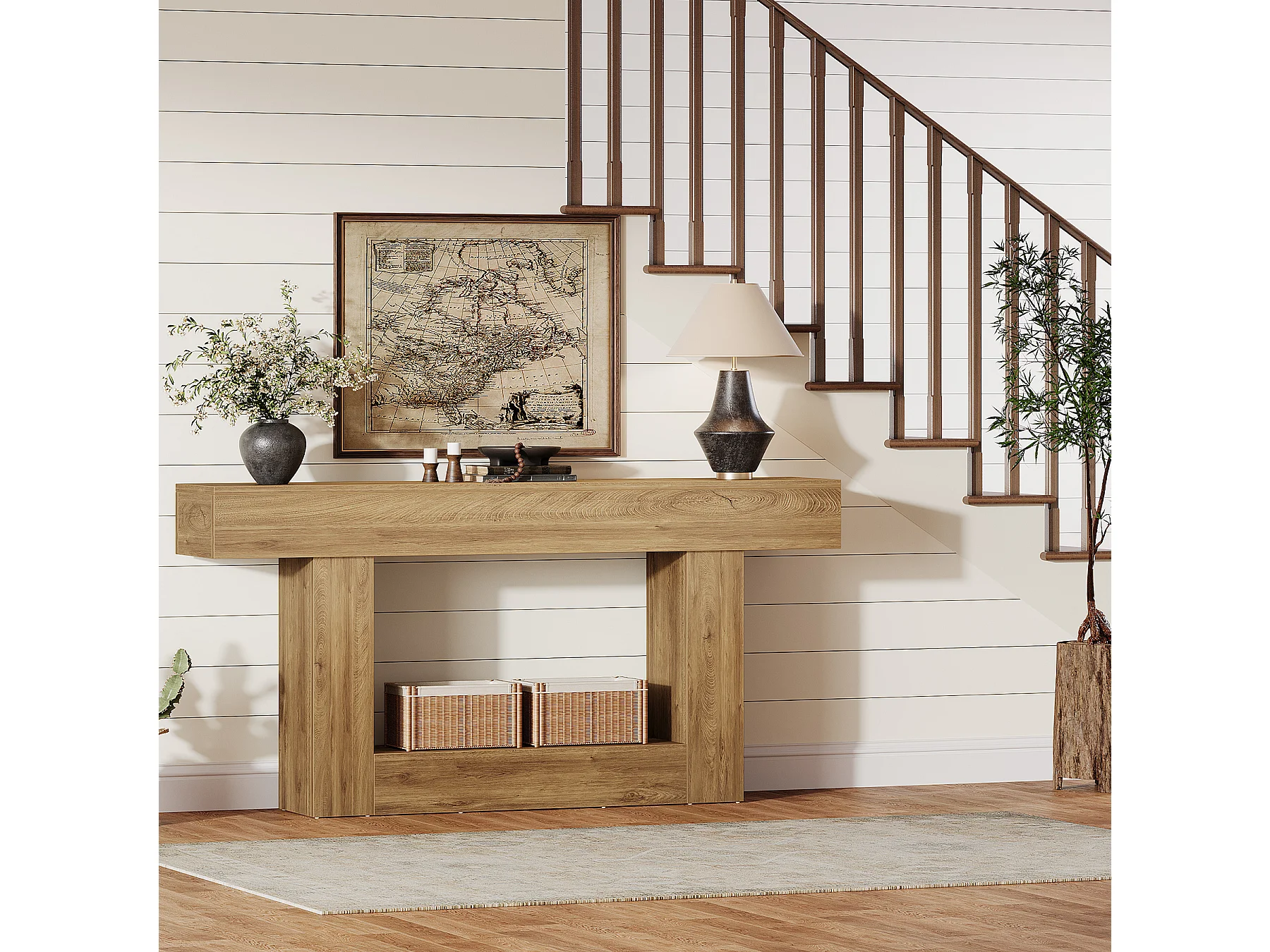Console 160 cm, table d'entrée à deux niveaux de style campagnard, table d'appoint derrière le canapé