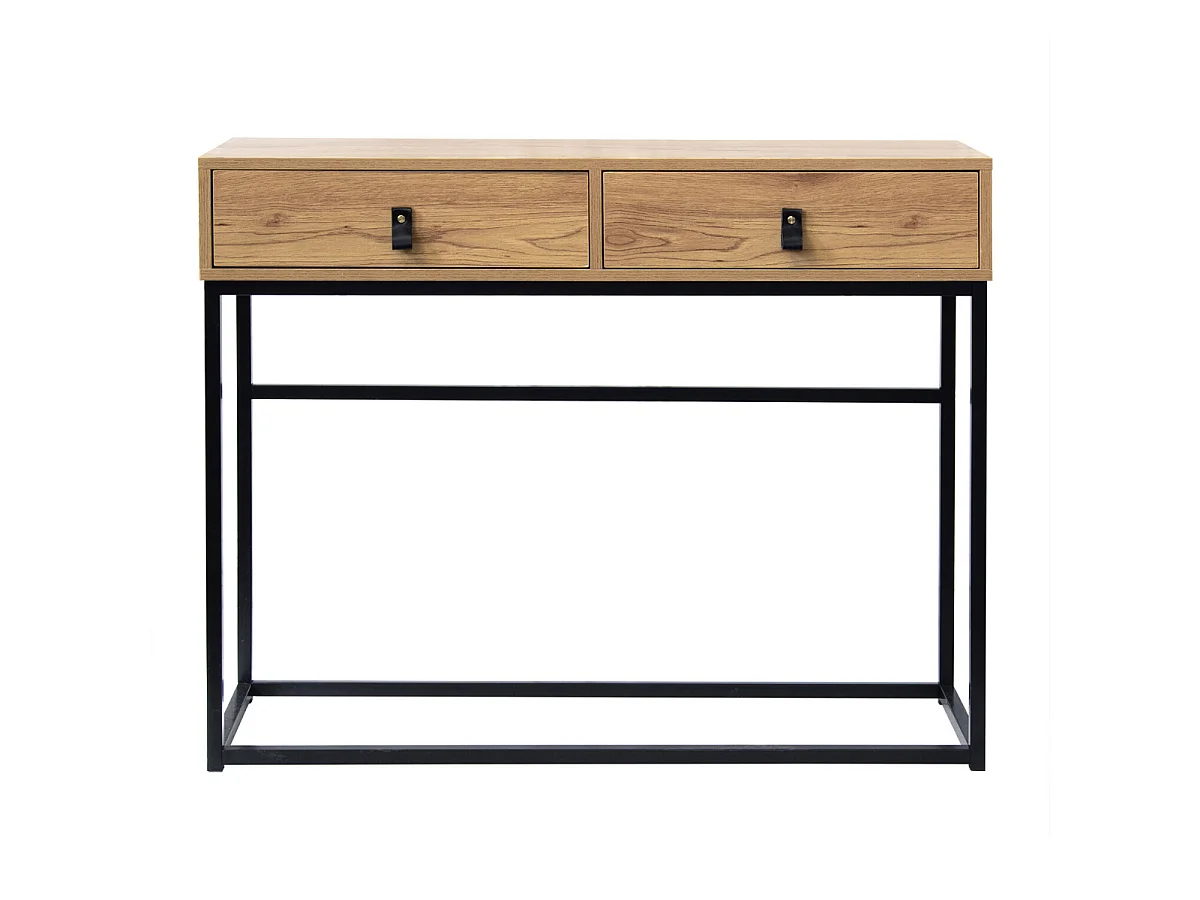 Console 2 Tiroirs Pieds Métal Effet Chêne - JILL