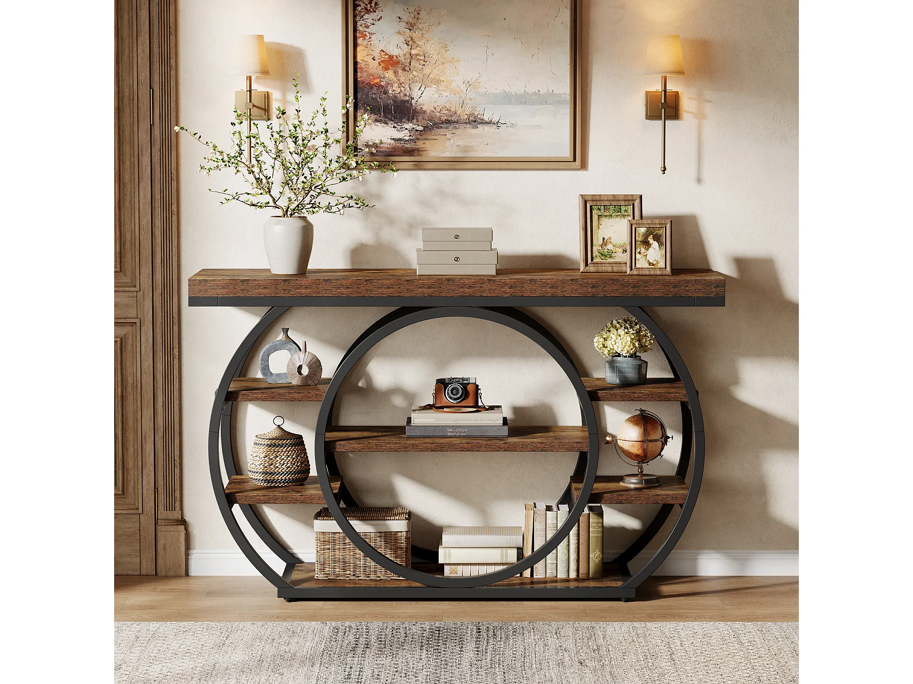 Console de 120 cm, table d'entrée industrielle à 5 niveaux avec structure en métal