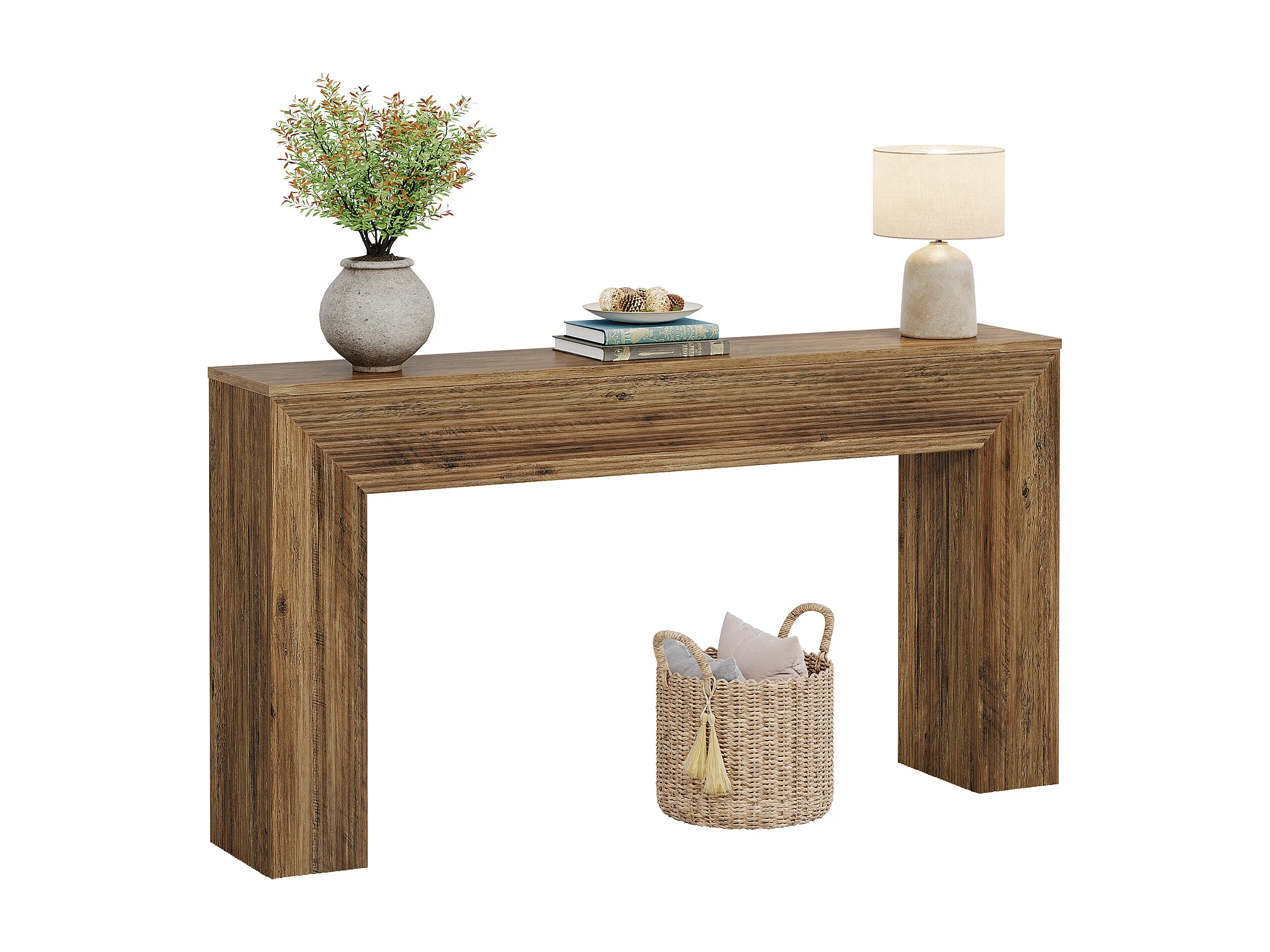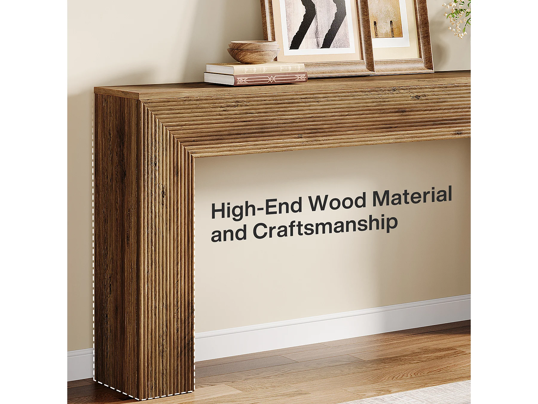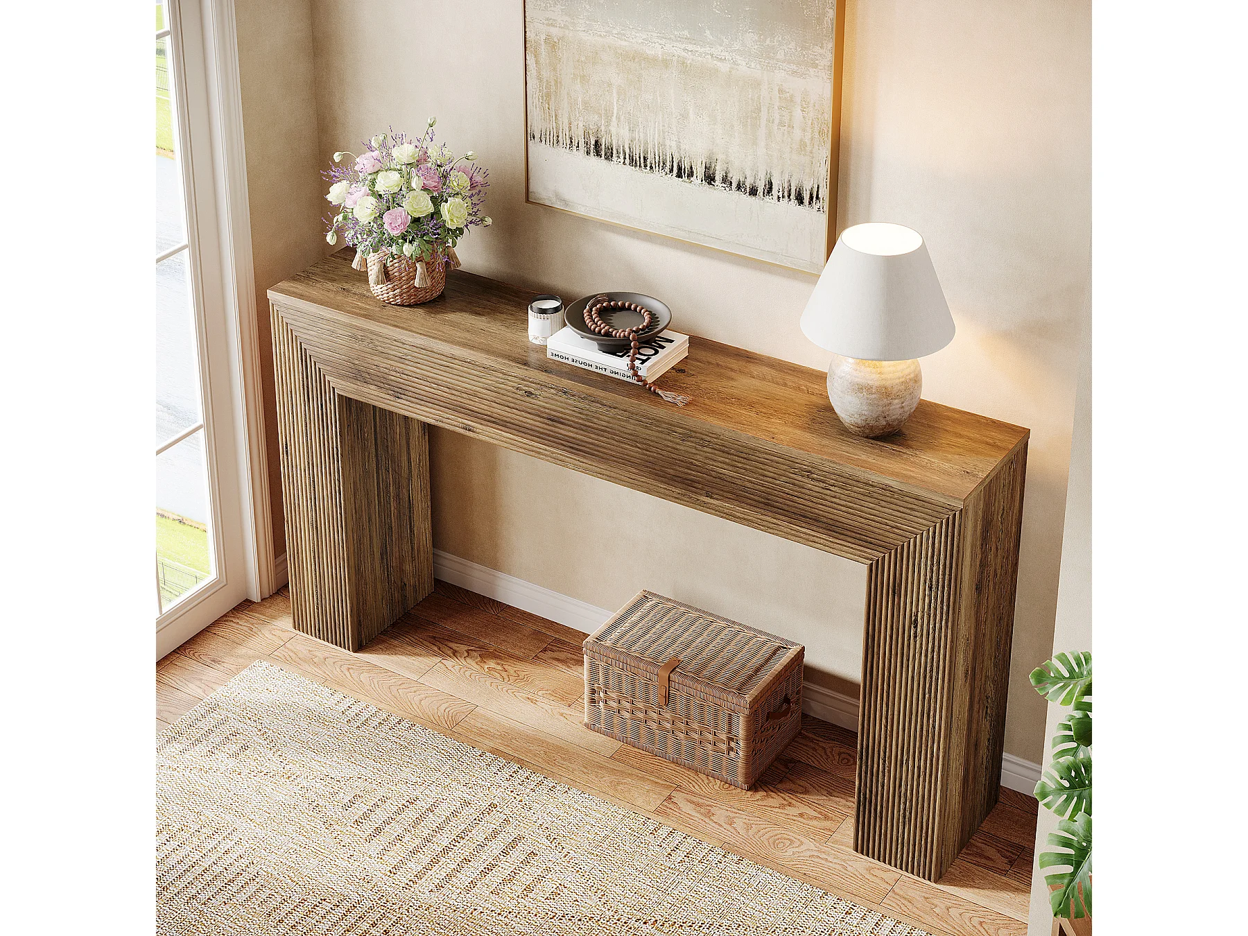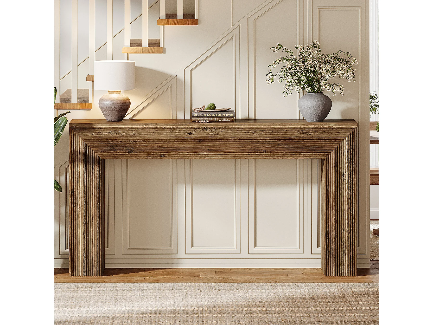 Console de 160 cm, table d'appoint rustique cannelée à placer derrière un canapé dans une entrée