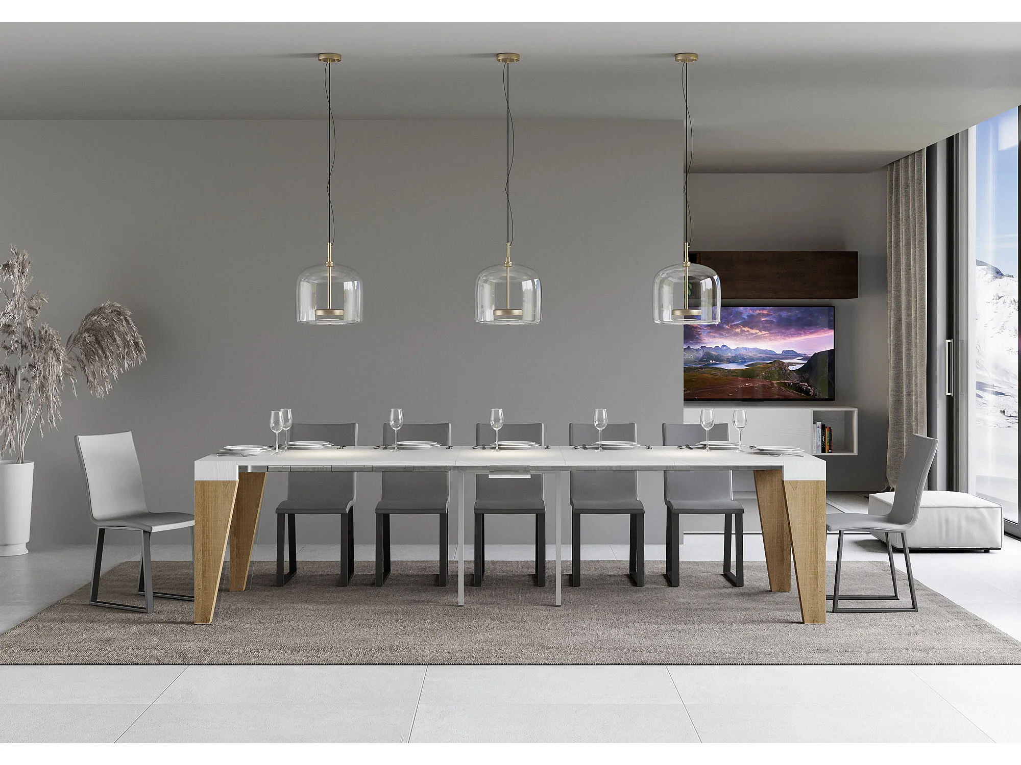 Console extensible 90x40/300 cm Naxy Mix dessus frêne blanc - structure chêne nature