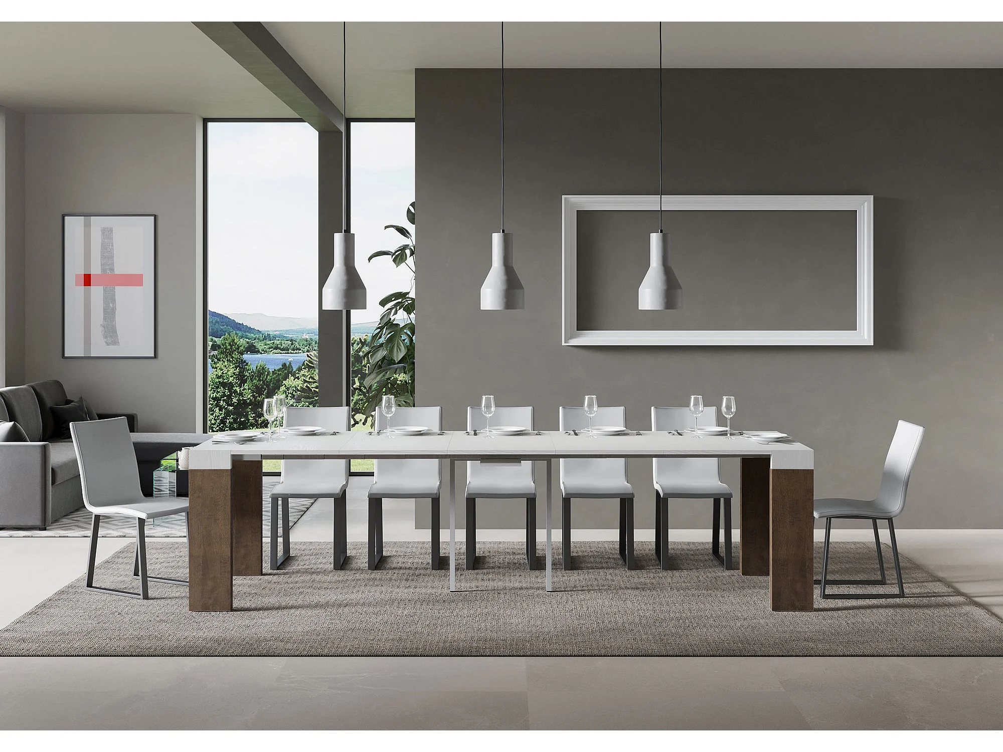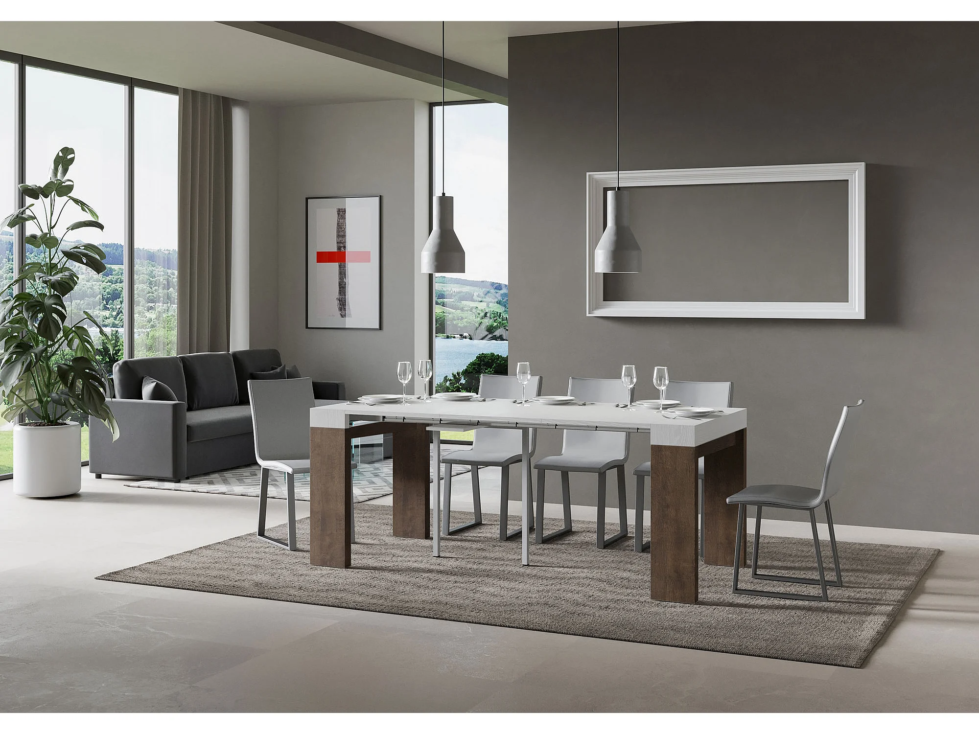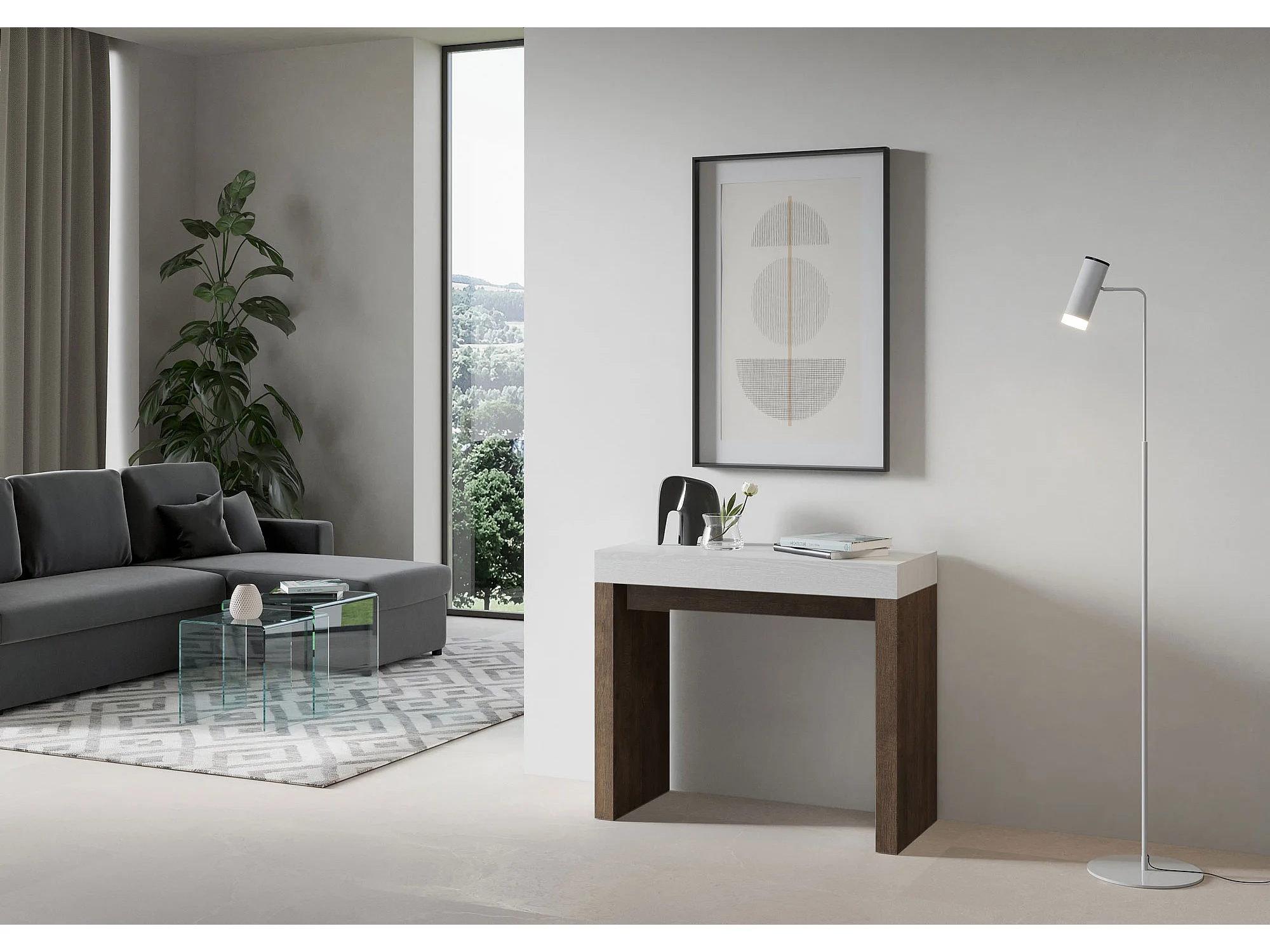 Console extensible 90x40/300 cm Roxell Mix dessus frêne blanc - structure noyer