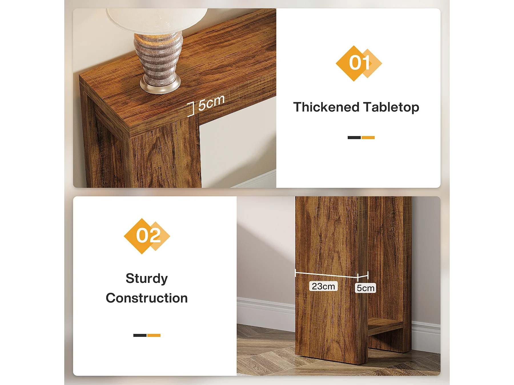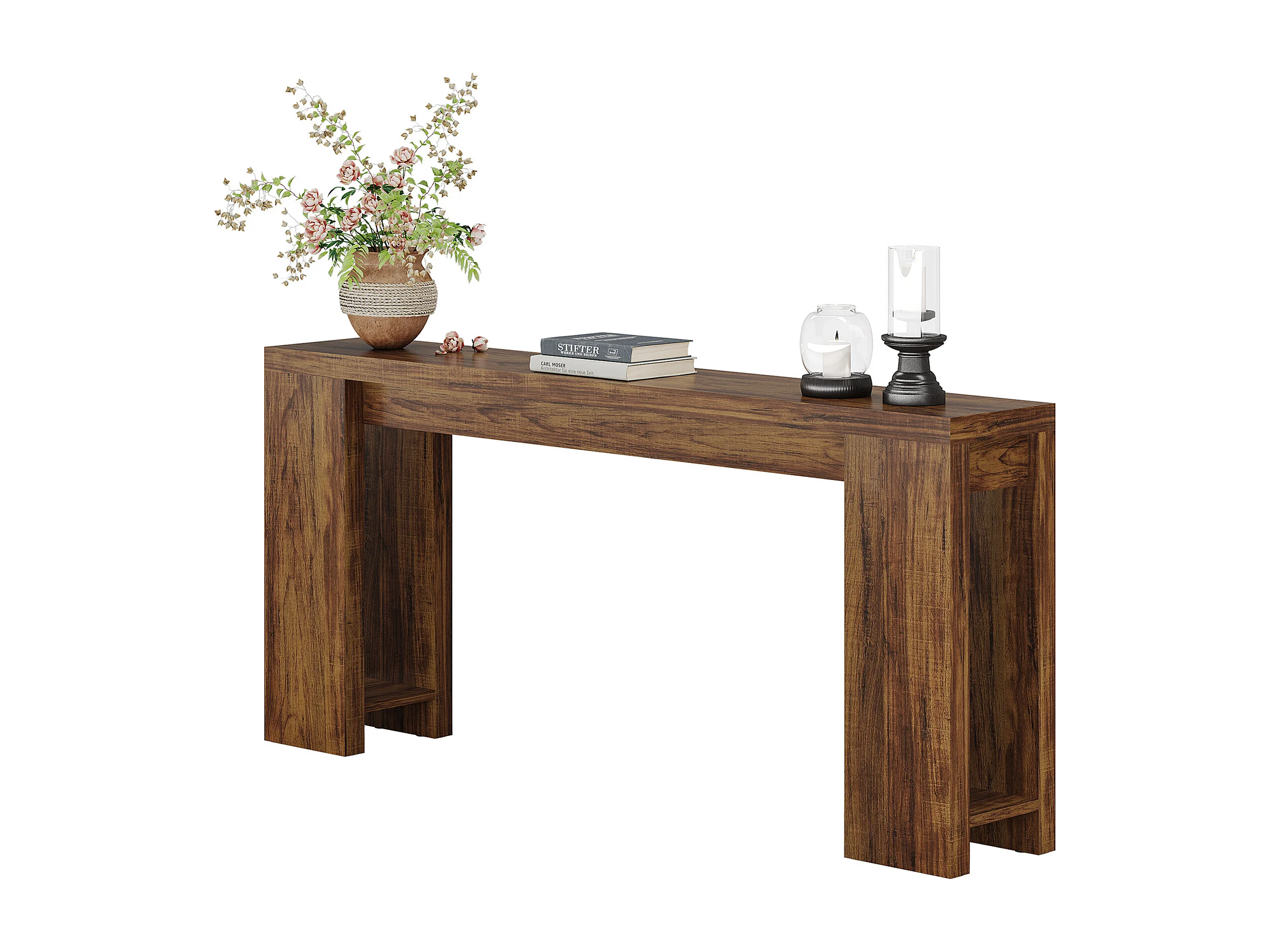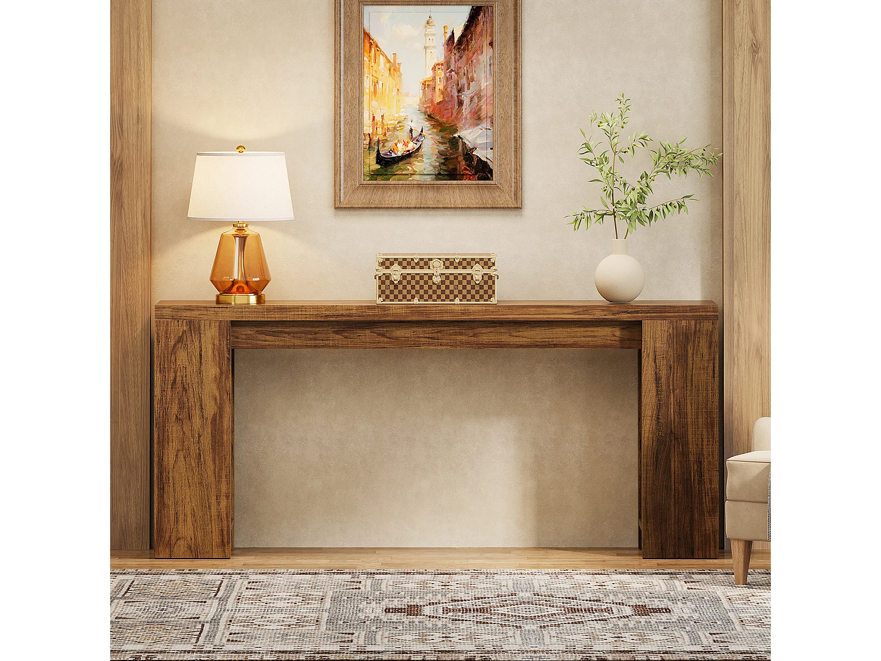 Console extra longue de 160 cm, table basse en bois de style campagnard à placer derrière le canapé