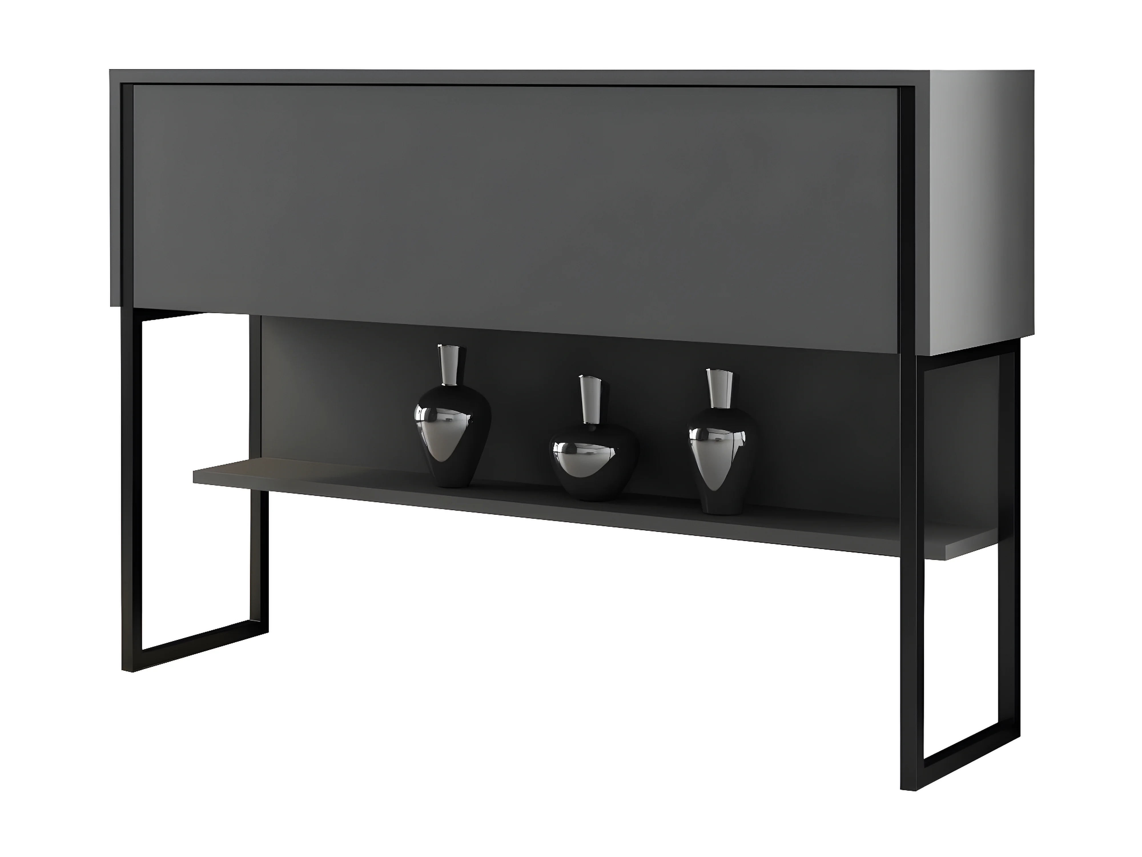 Console moderne 1 porte Sibylle L120cm Bois Anthracite et Métal Noir