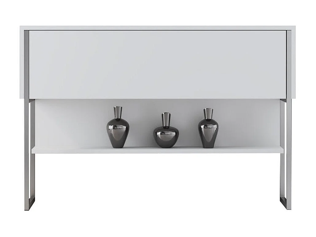 Console moderne 1 porte Sibylle L120cm Bois Blanc et Métal Argent