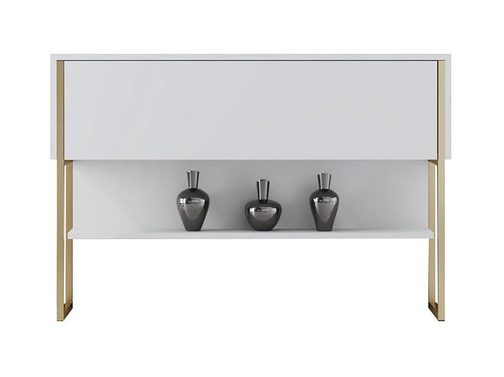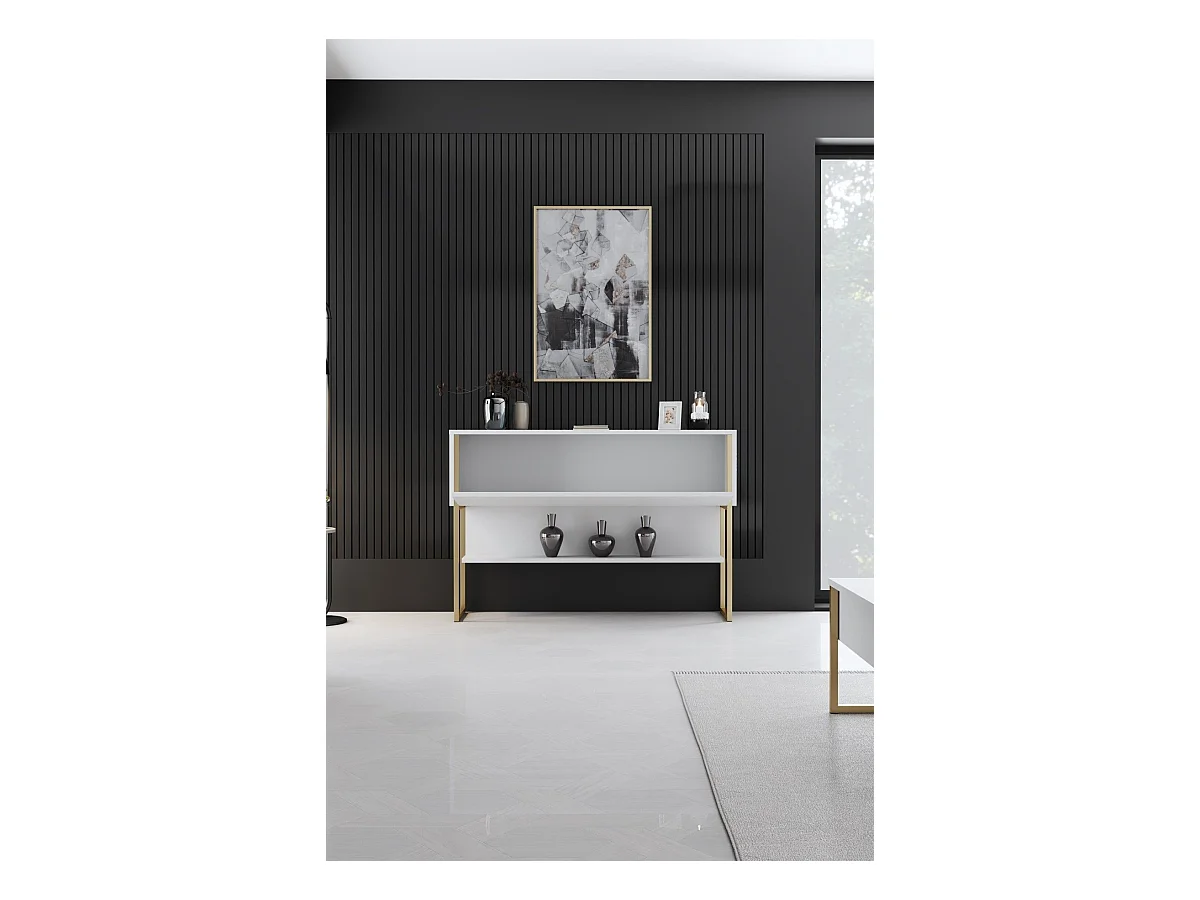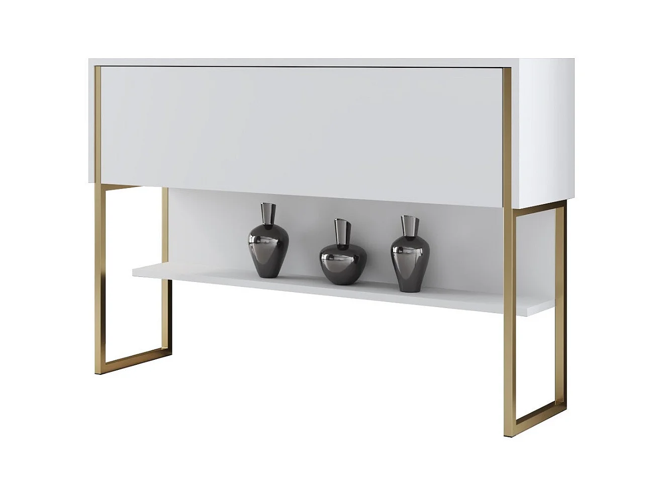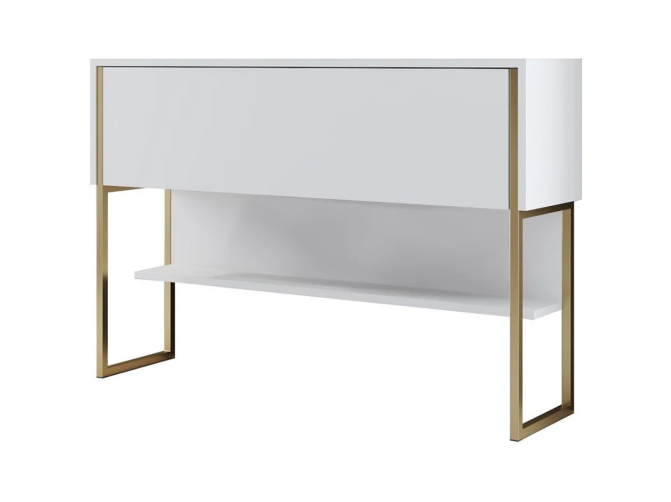 Console moderne 1 porte Sibylle L120cm Bois Blanc et Métal Or