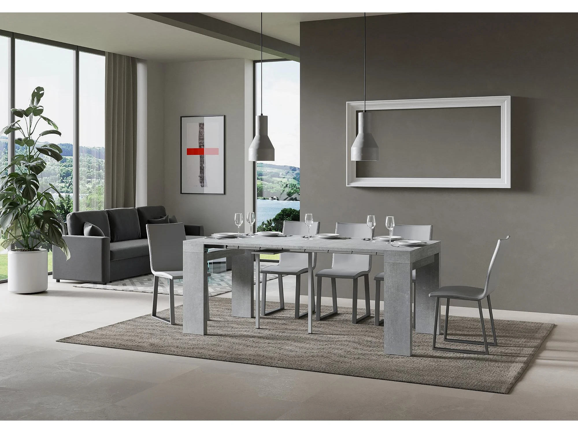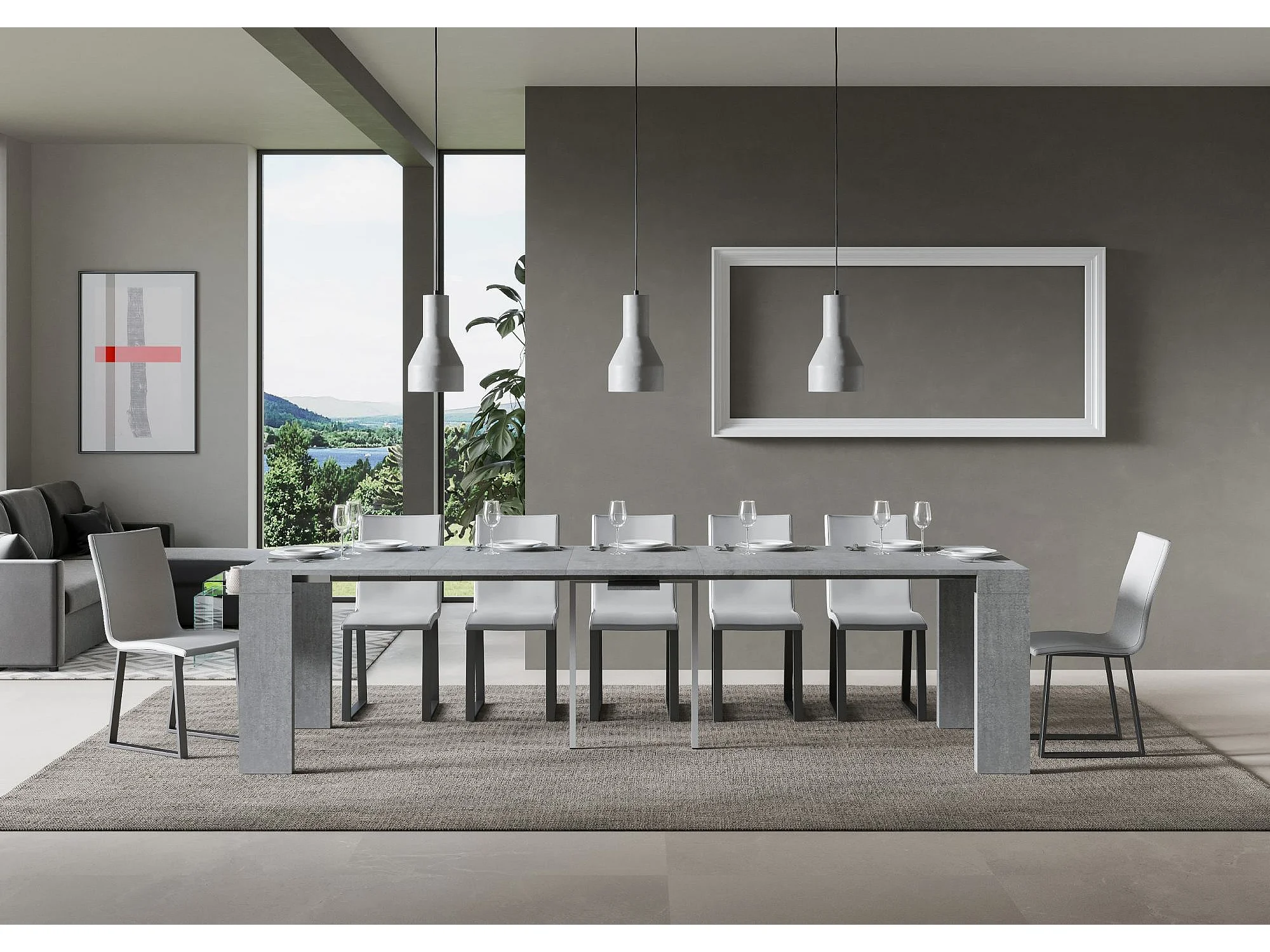 Console extensible 90x42/302 cm Isotta gris béton