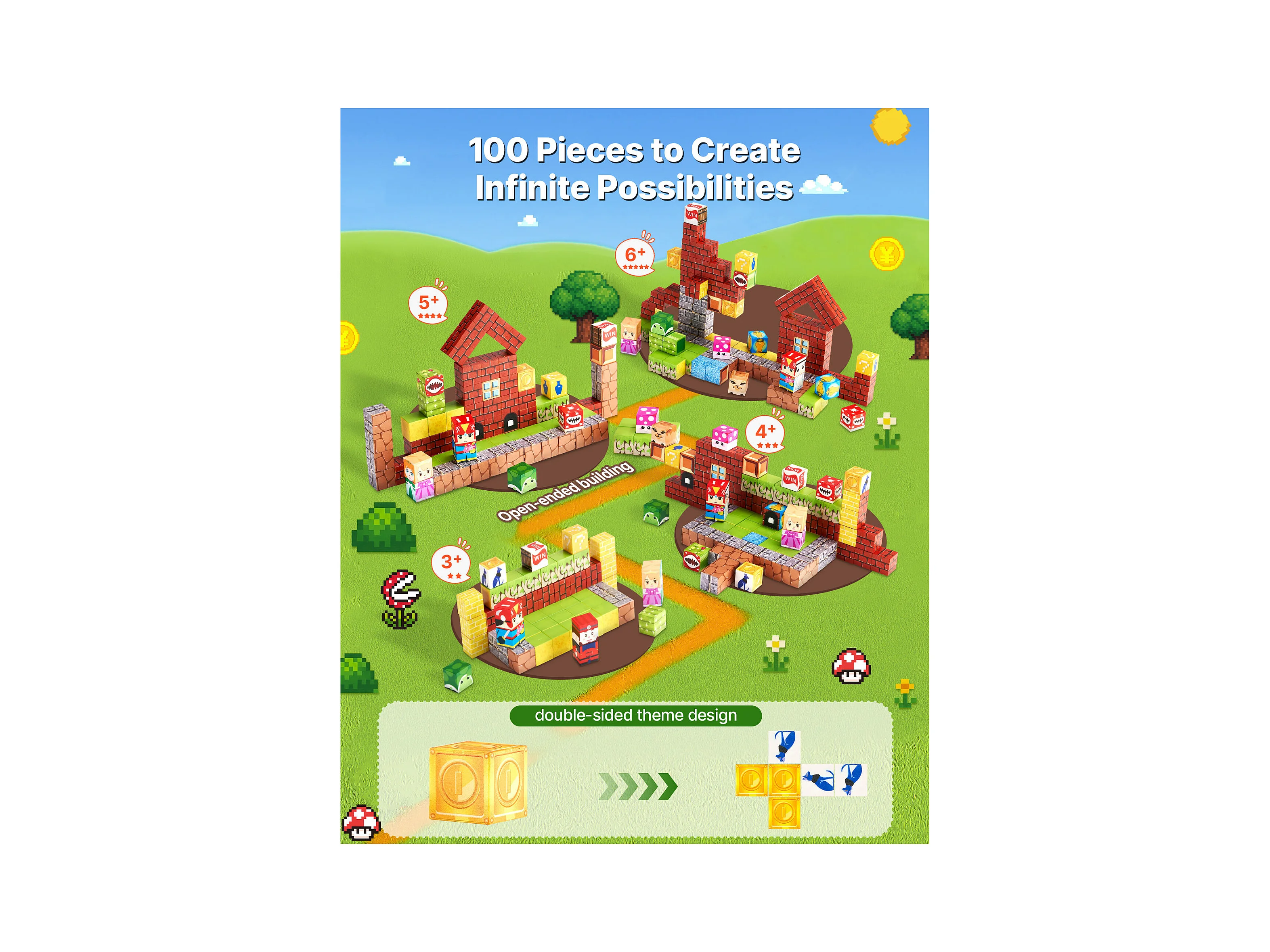 Construction Magnétique Enfant SucceBuy, 100 PCS Blocs de Construction Magnétiques, pour Cadeau d'Anniversaire, de Noël, Garçons et Filles de 3 Ans et Plus