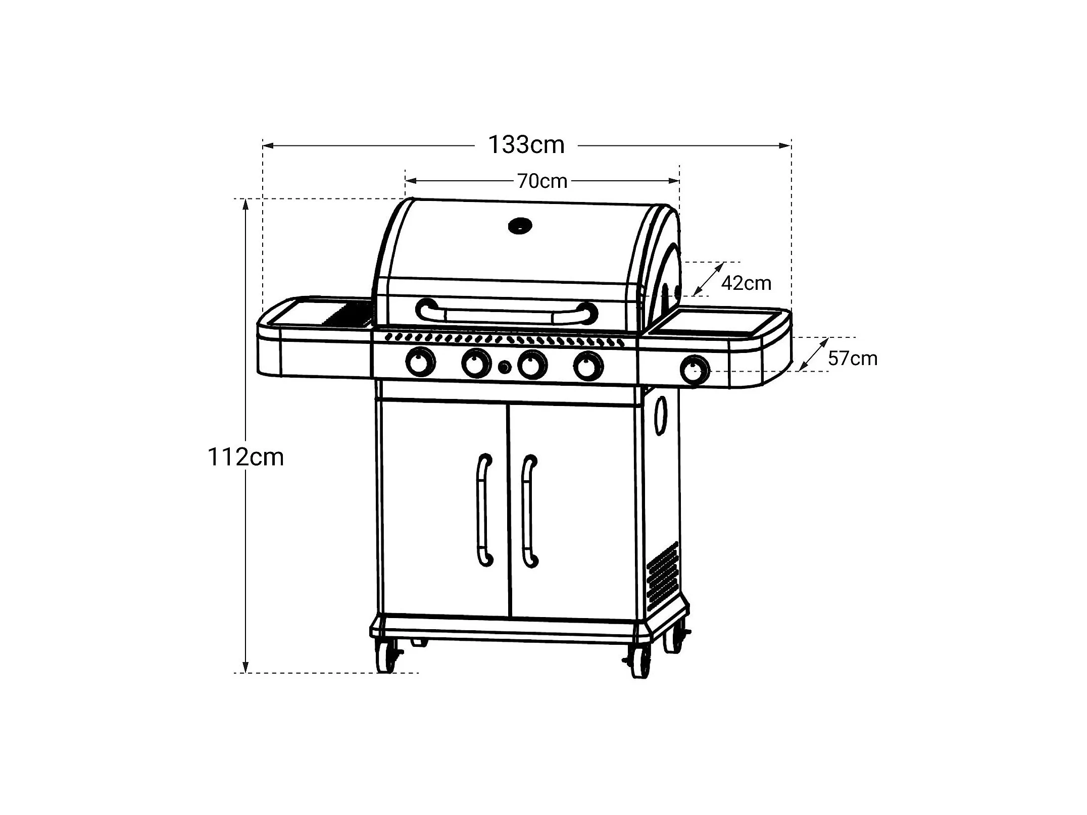 Barbecue au gaz FIDGI 4 avec thermomètre - 4 brûleurs + réchaud 14,5kW - COOK'IN GARDEN