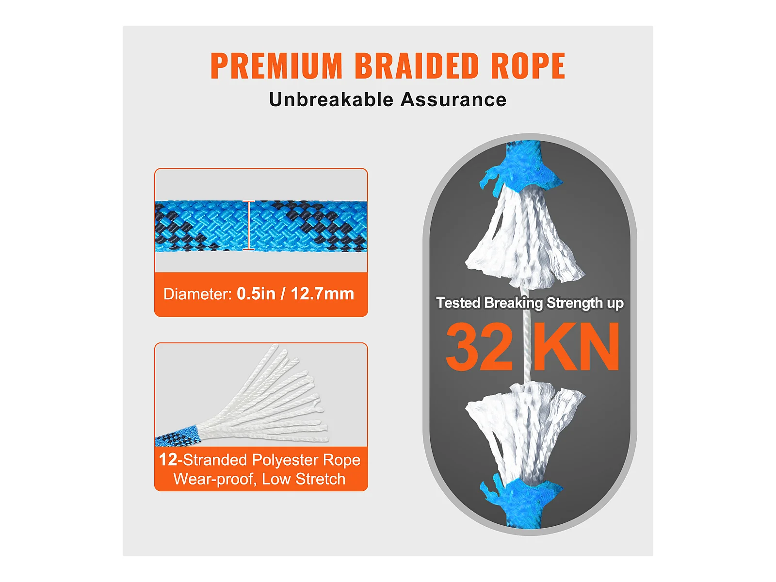 Corde d'Escalade Dynamique SucceBuy, 10,2 mm, 50 m, 25KN, Corde d'Escalade Extérieure, Bleu