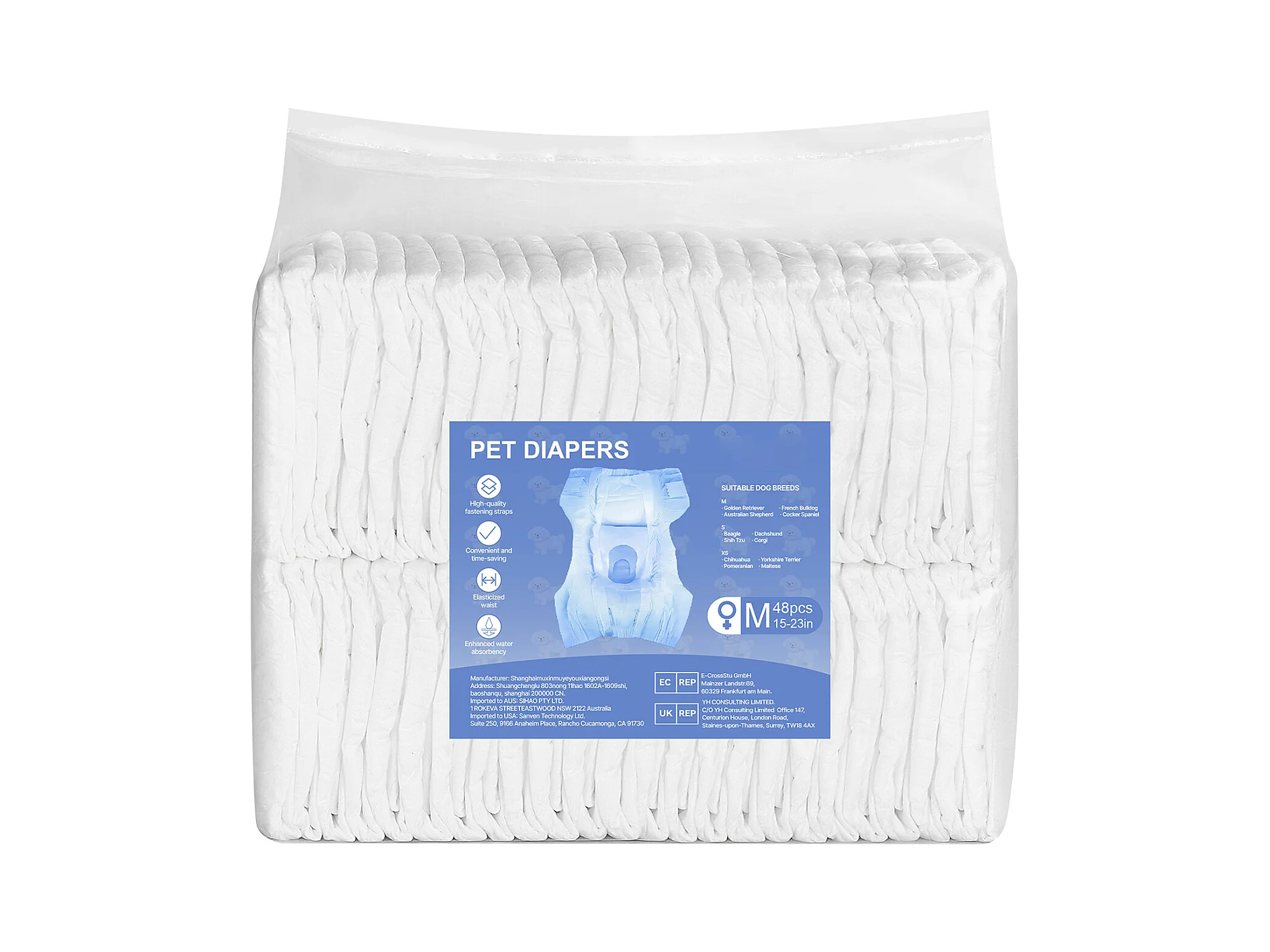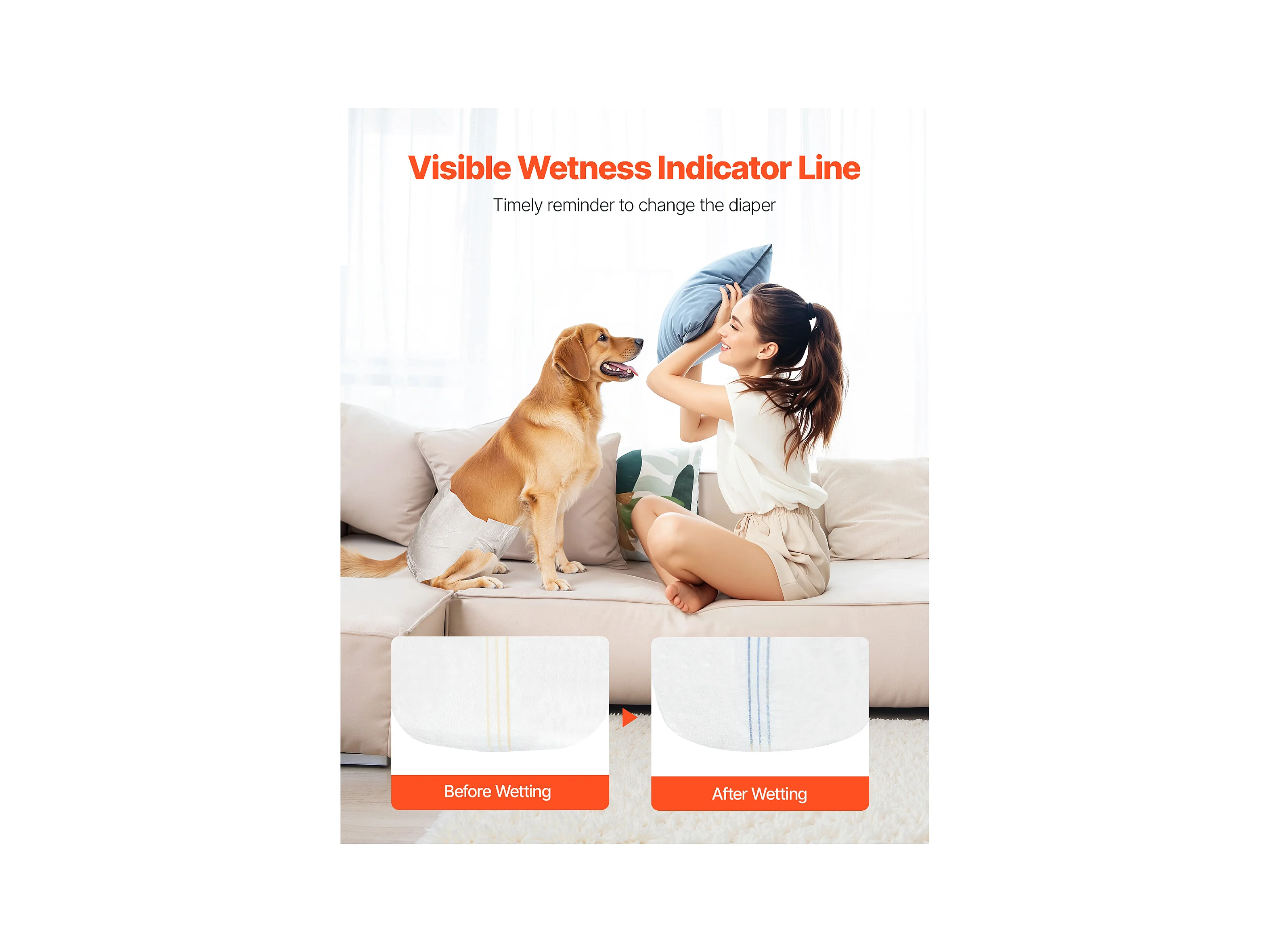 Couches Jetables SucceBuy pour Chiens Femelles, 96 Pièces, Couches pour Chiennes Super Absorbantes Anti-Fuites, Taille M, pour Entraînement, 2 Lots de 48