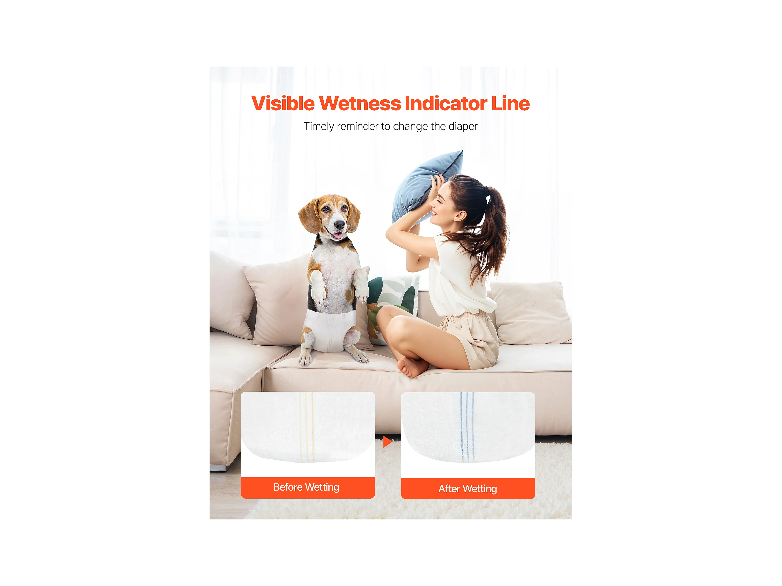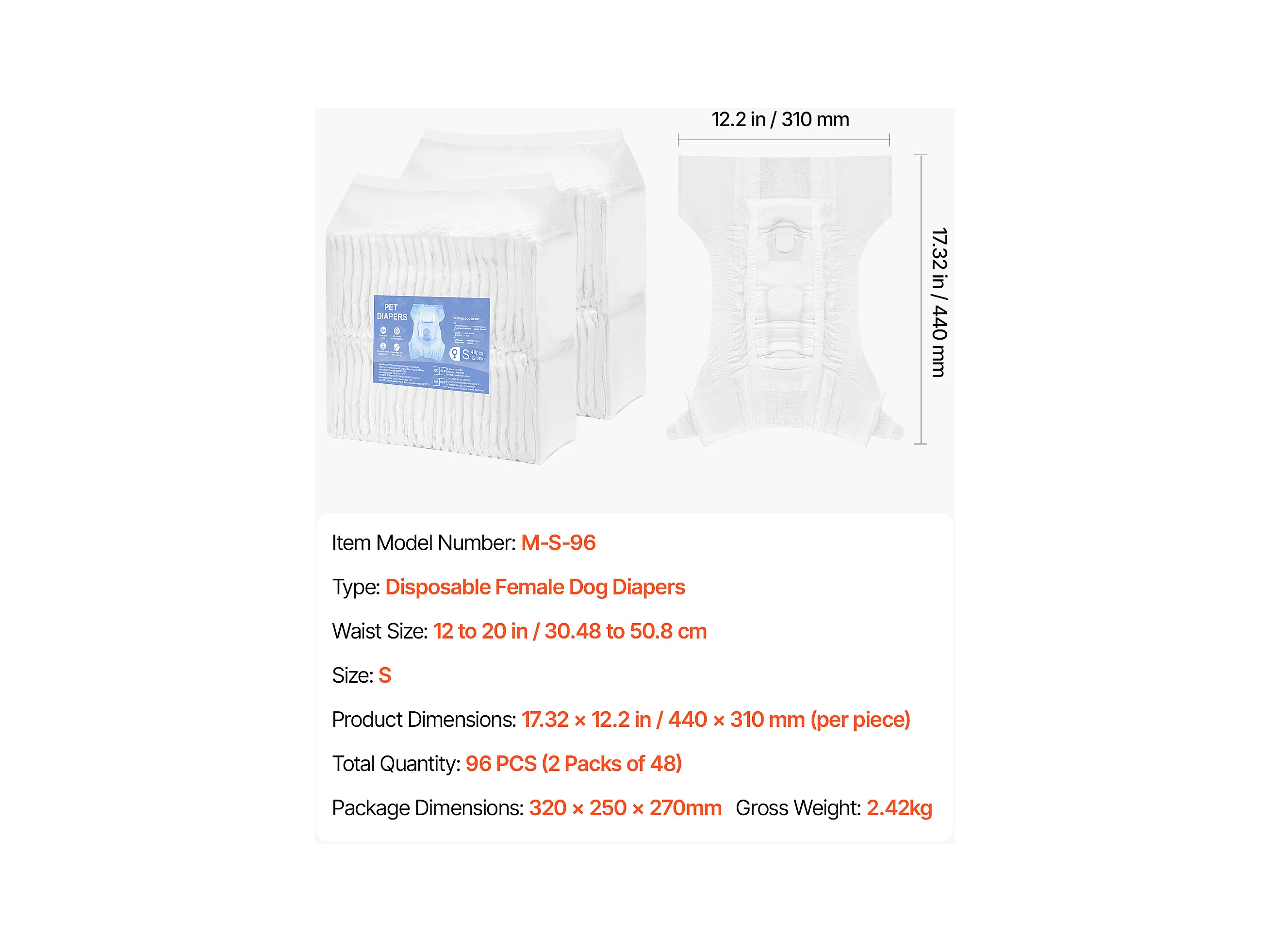 Couches Jetables SucceBuy pour Chiens Femelles, 96 Pièces, Couches pour Chiennes Super Absorbantes Anti-Fuites, Taille M, pour Entraînement, 2 Lots de 48