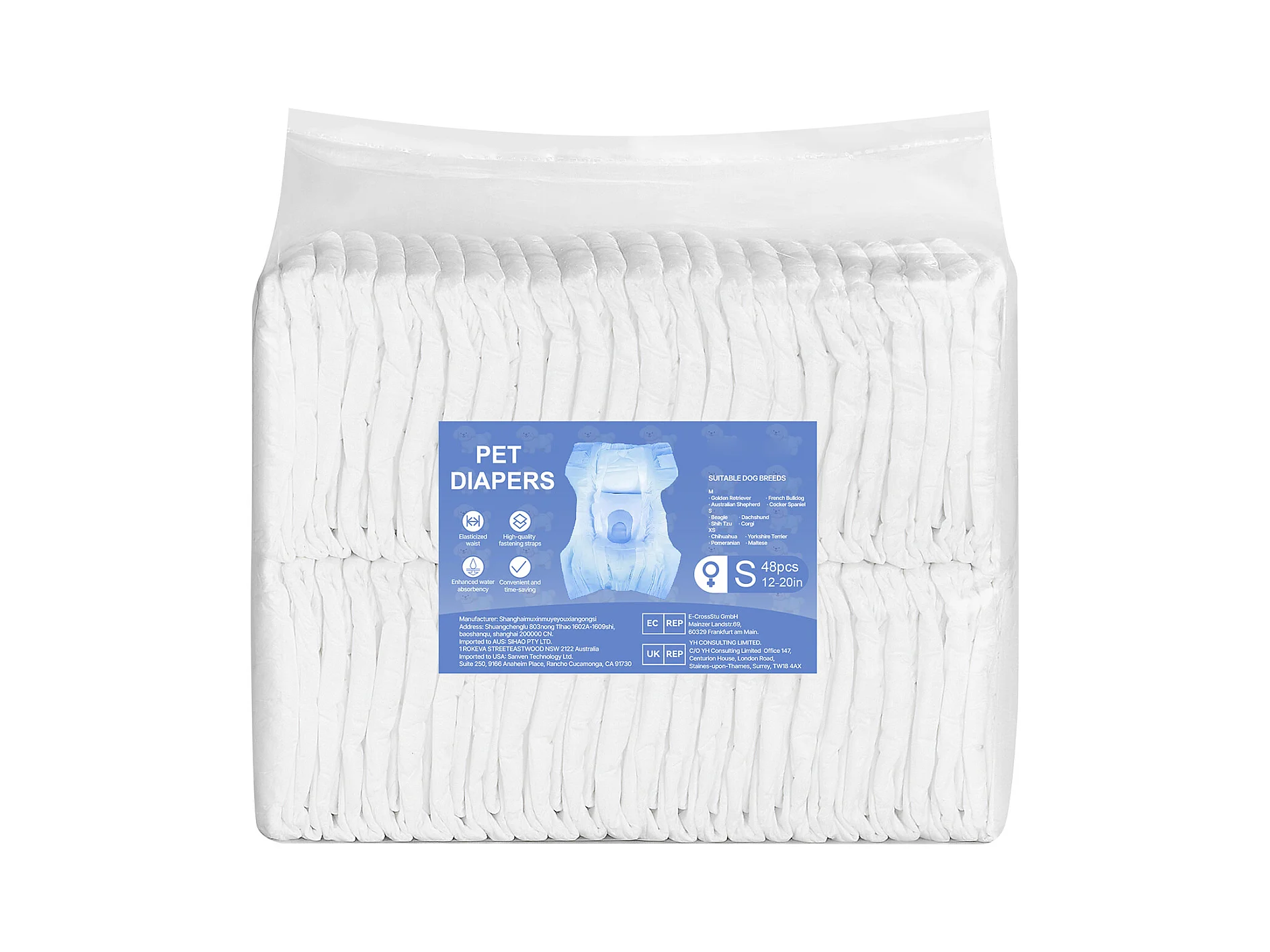 Couches Jetables SucceBuy pour Chiens Femelles 96 Pièces, Couches pour Chiennes Super Absorbantes Anti-Fuites Taille S, pour Entraînement, 2 Lots de 48