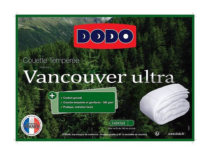 Couette 240 x 260 cm - DODO - Tempérée - 100% fibre polyester - Pour 2 personnes - Blanc