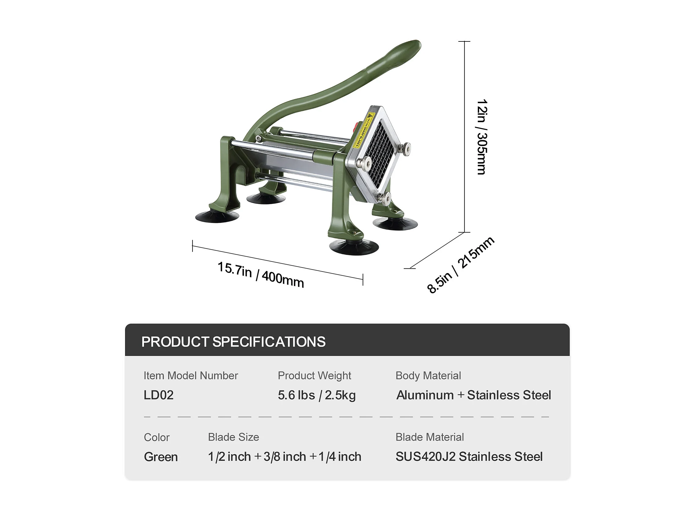 Coupe-frites et Légumes, SucceBuy Coupe-frites, un Hachoir Trancheur en Acier Inoxydable pour Pommes de Terre et Légumes avec 3 Lames
