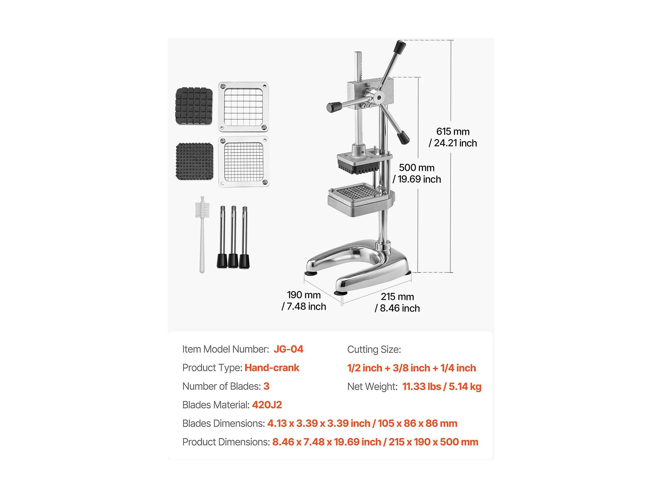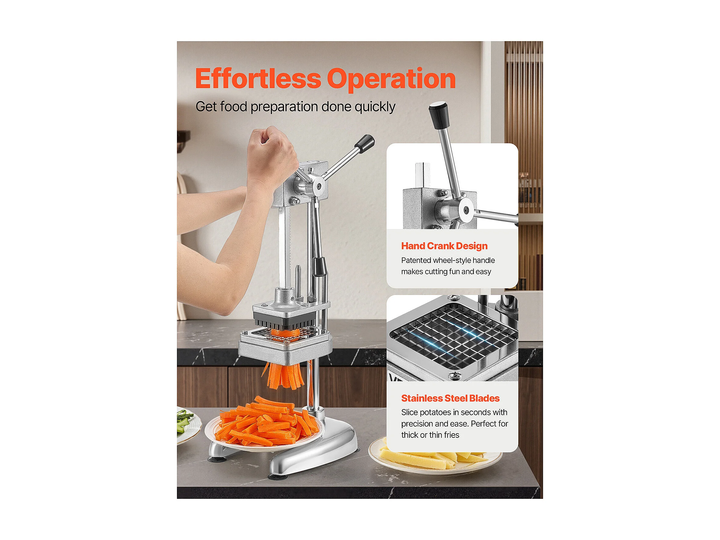 Coupe-Frites Pomme SucceBuy de Terre Professionnel Manuel, Coupe-Légumes et Fruits Multifonction, avec 3 Lames de Rechange 12,7 mm, 9,5 mm, 6,4 mm