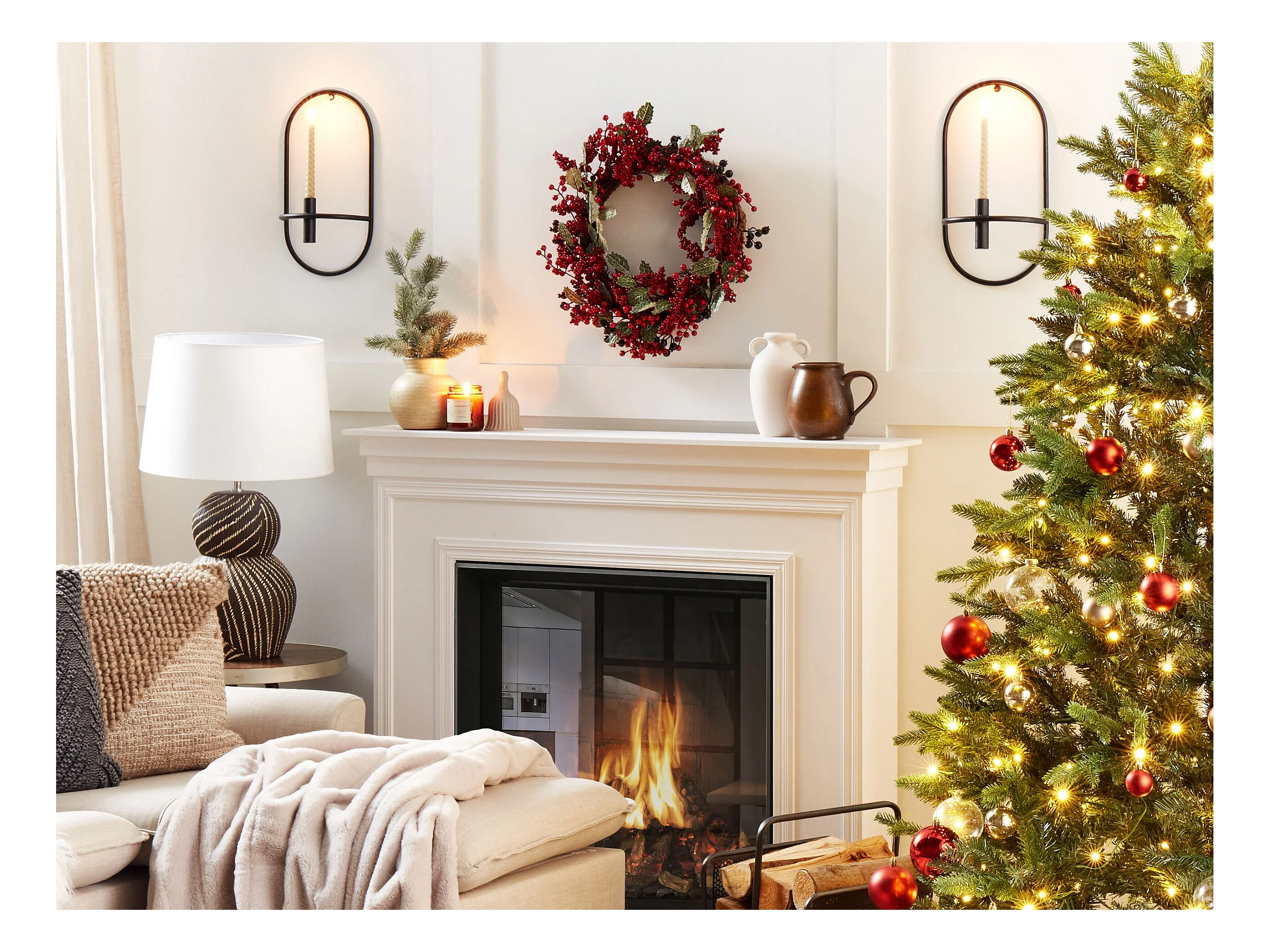Couronne de Noël Poinsettia et déco pailletée D 50 cm