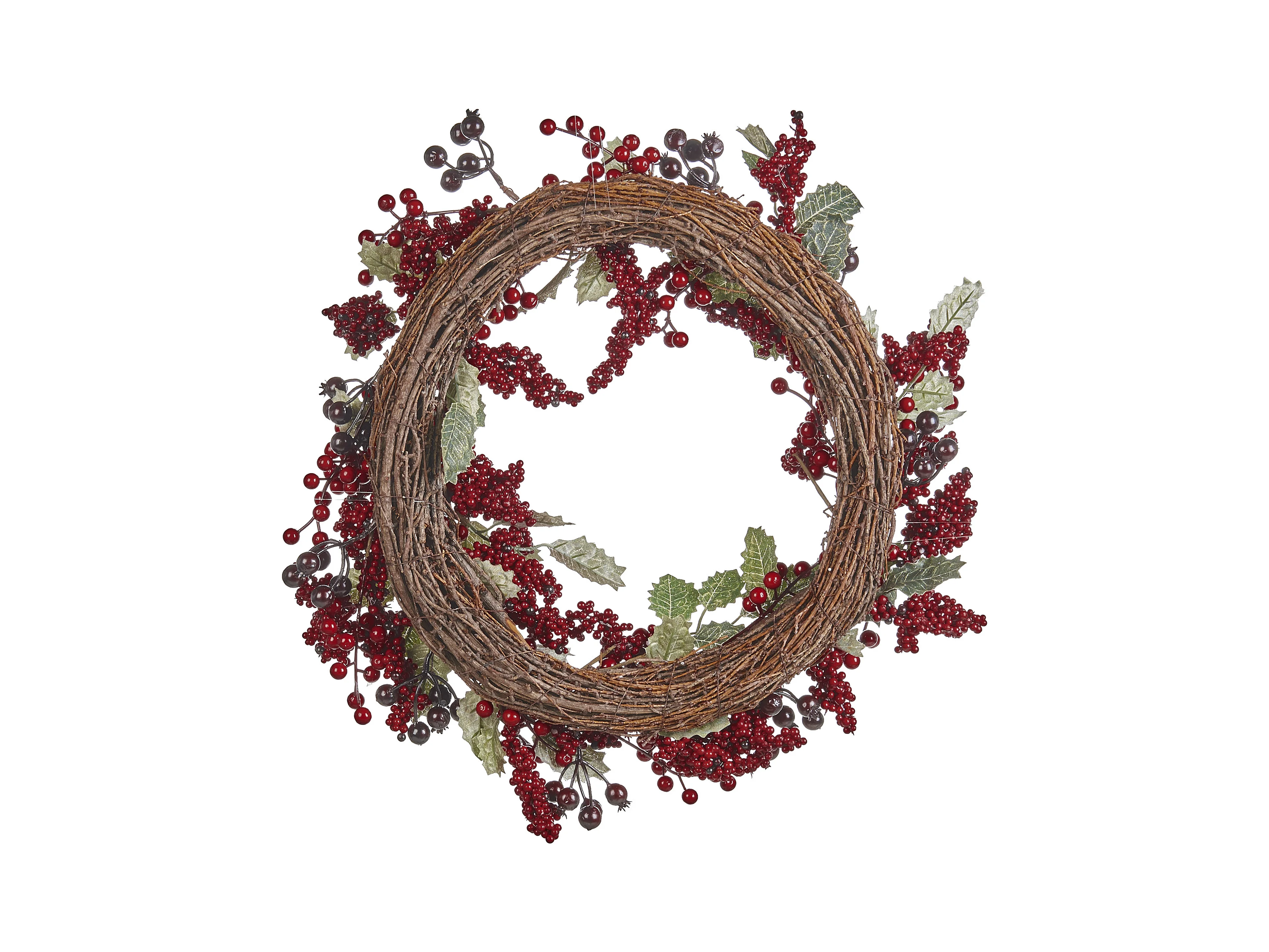Couronne de Noël en Bois avec branchage et déco rouge pailletée D 30 cm
