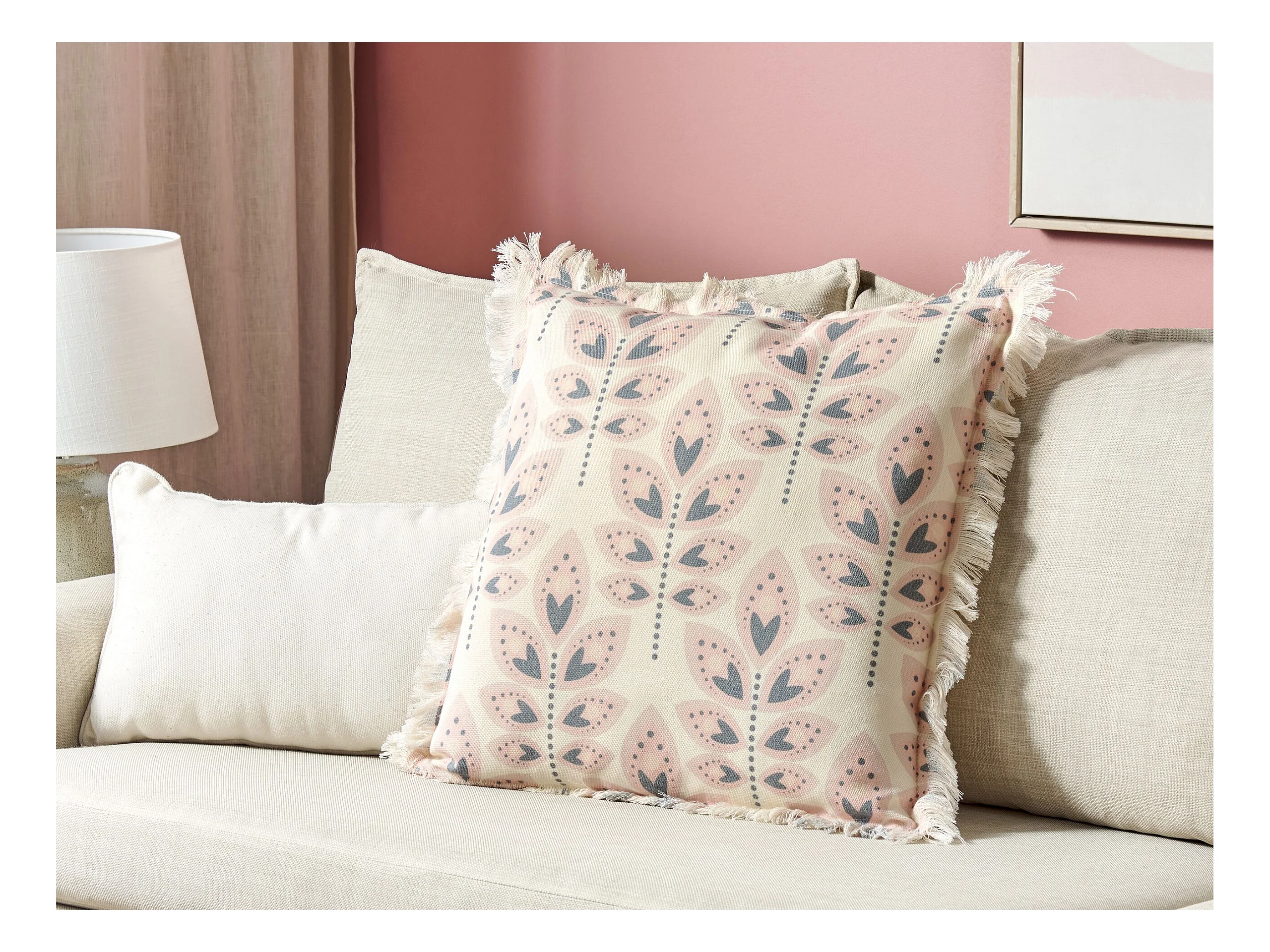 Coussin MELOBESIA Coton 45 x 45 cm Beige Motif de plante