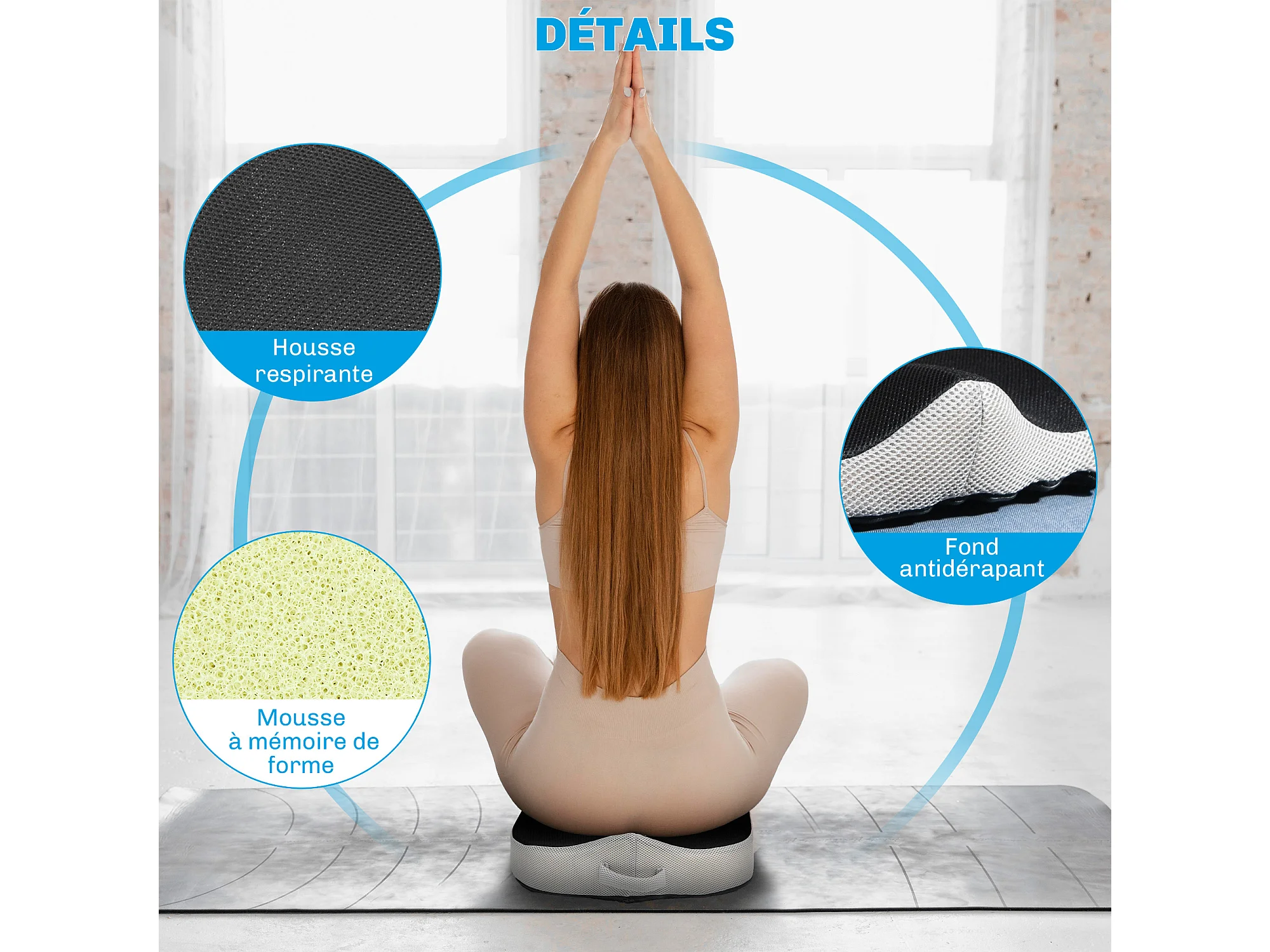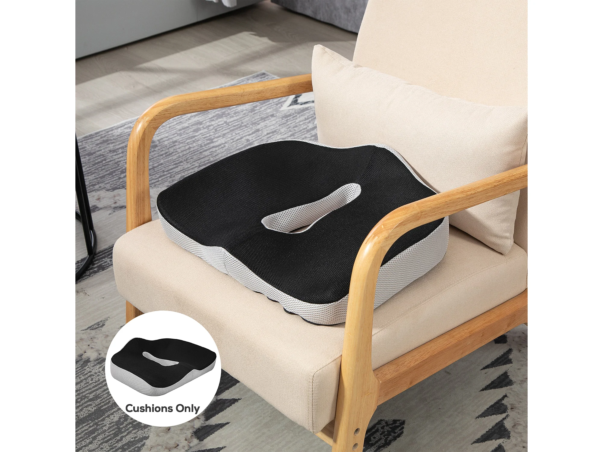 Coussin siège de chaise de bureau en mousse à mémoire de forme - coussin coccyx ergonomique - maille gris noir