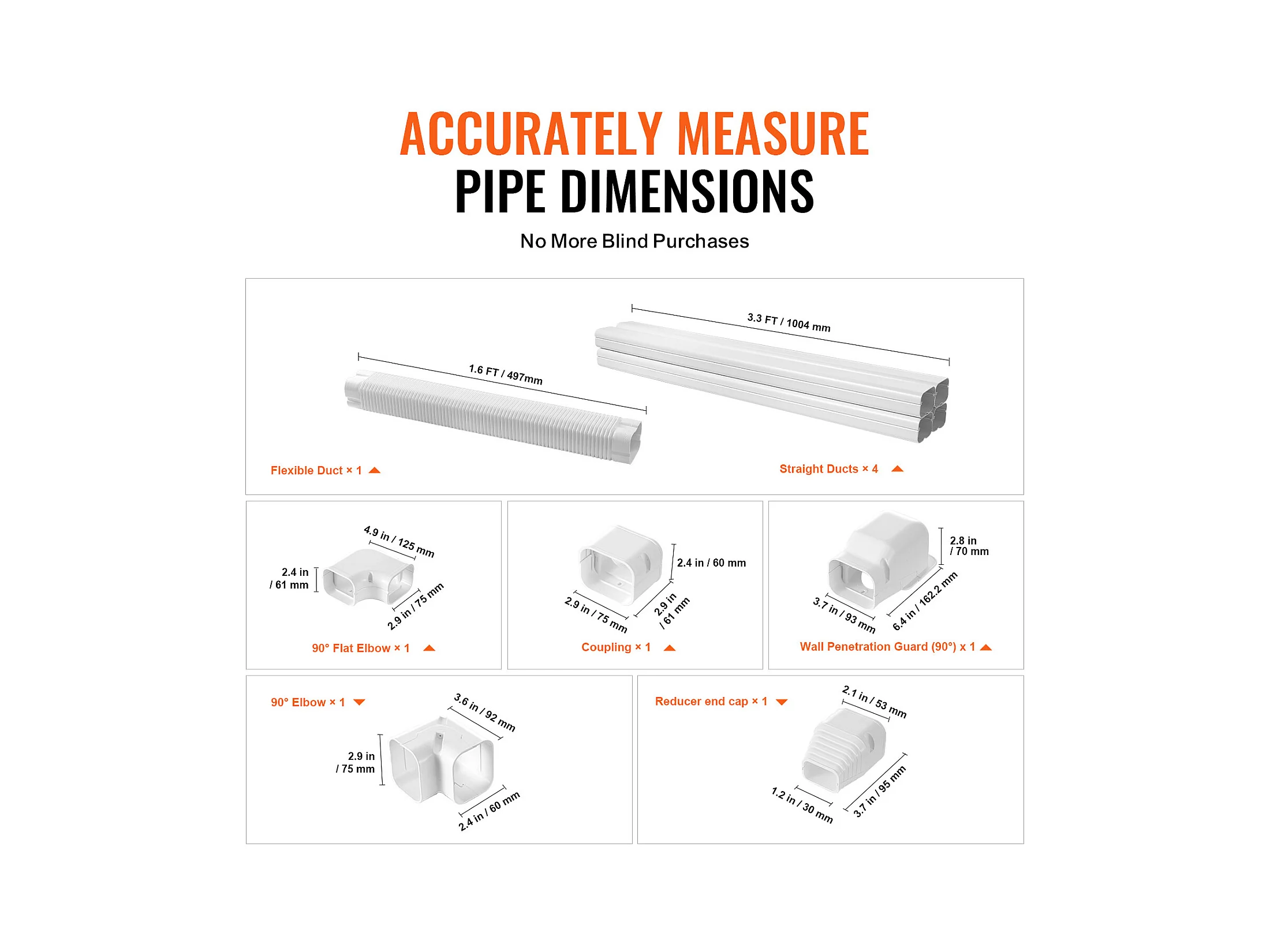 Couvercle de Ligne SucceBuy 7.62cm de Largeur 483 cm pour Mini-Split/Climatiseur, PVC Décoratif pour Climatiseur. 4 Conduits Droits et Composants, Blanc